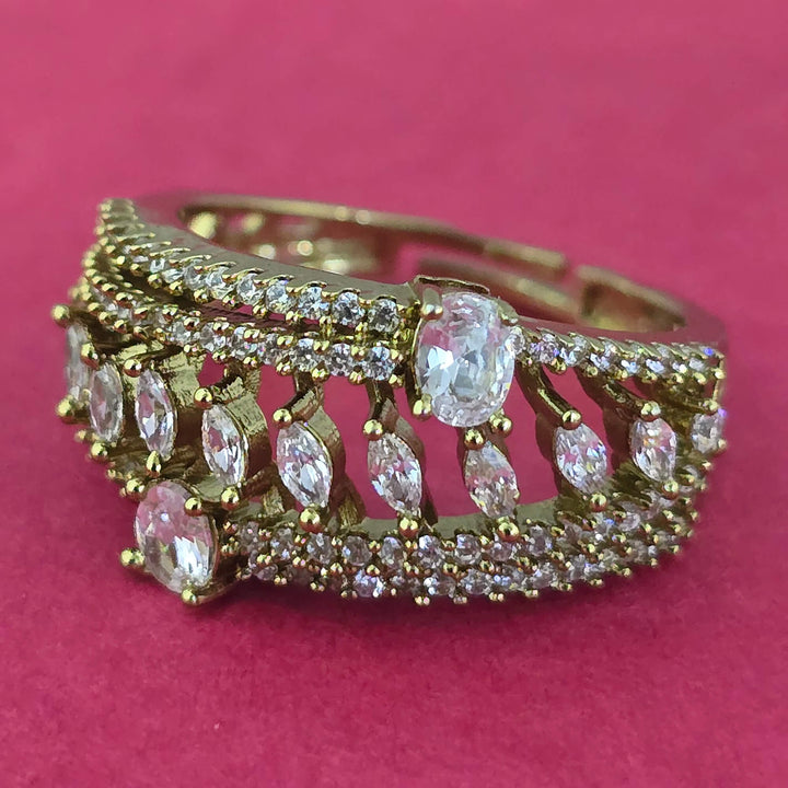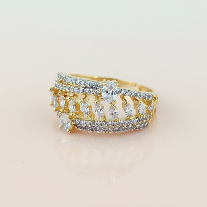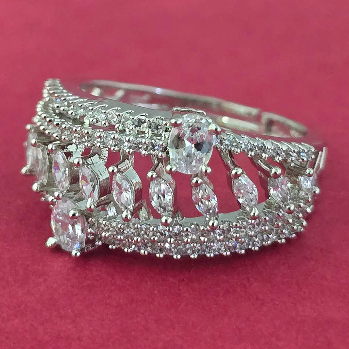 Weight: 4.0 Grams, Height = 10 mm || Width = 22 mm,Classic Ring,Mehndi Plating,2 Tone Plating,Rhodium Plating,American Diamond Ring