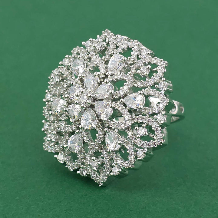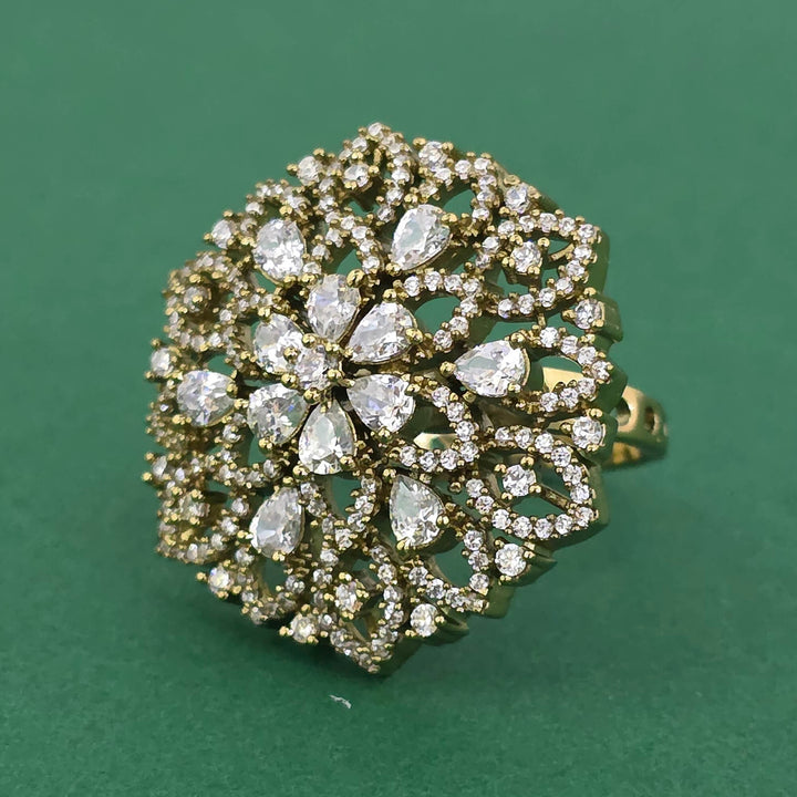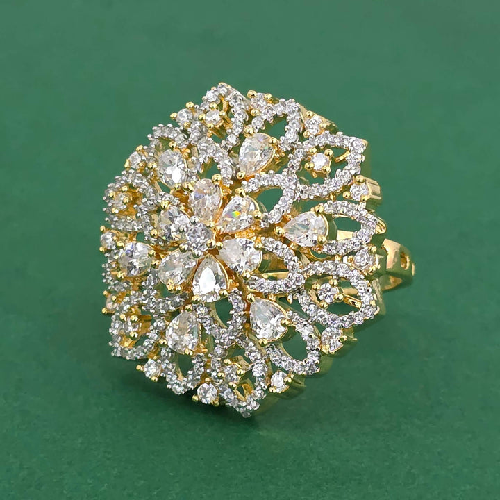 Weight: 9.0 Grams, Height = 28 mm || Width = 28 mm,Classic Ring,Mehndi Plating,2 Tone Plating,Rhodium Plating,American Diamond Ring