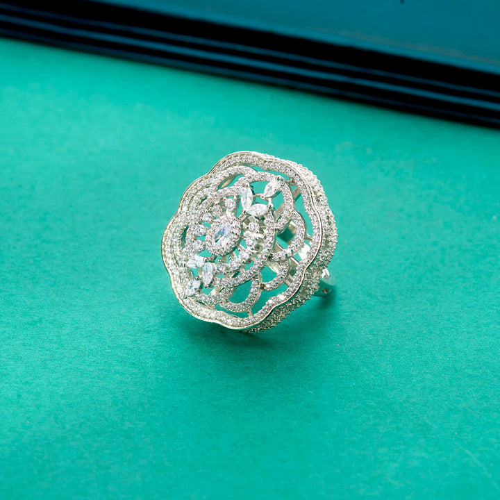 Weight: 15.0 Grams, Height = 30 mm || Width = 26 mm,Classic Design,American Diamond Ring