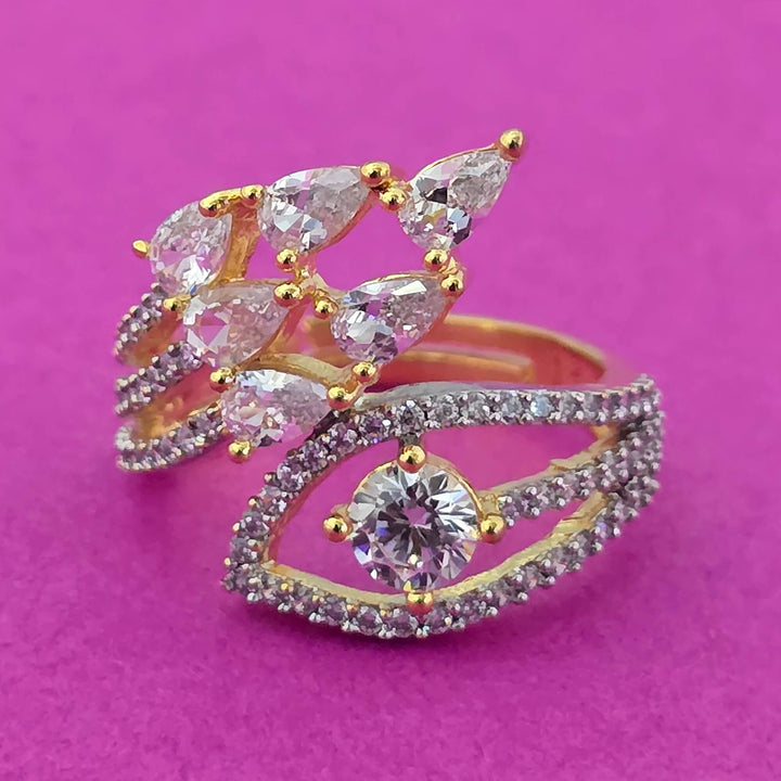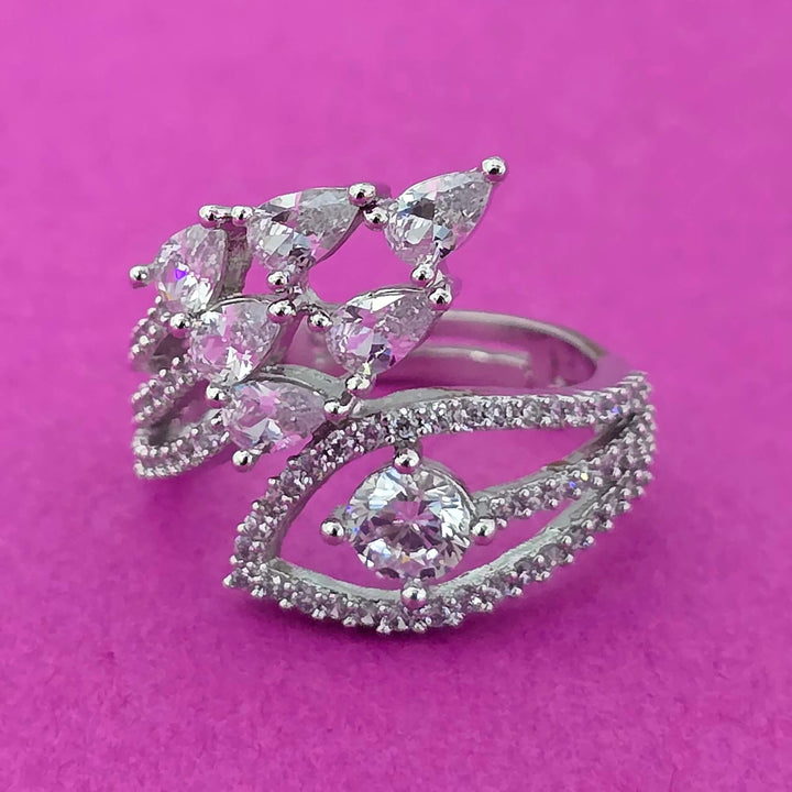 Weight: 4.0 Grams, Height = 20 mm || Width = 22 mm,Handmade Design,2 Tone Plating,Rhodium Plating,American Diamond Ring
