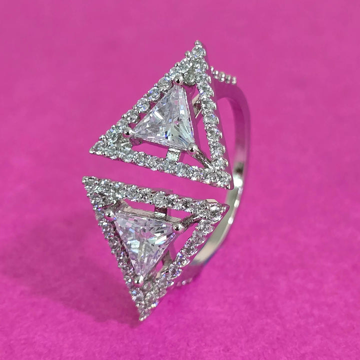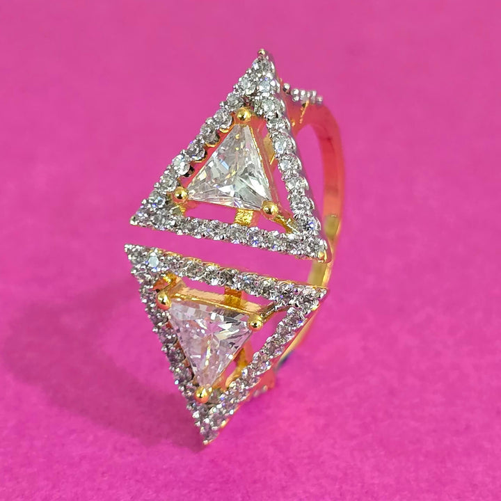 Weight: 4.0 Grams, Height = 15 mm || Width = 28 mm,Classic Ring,2 Tone Plating,Rhodium Plating,American Diamond Ring