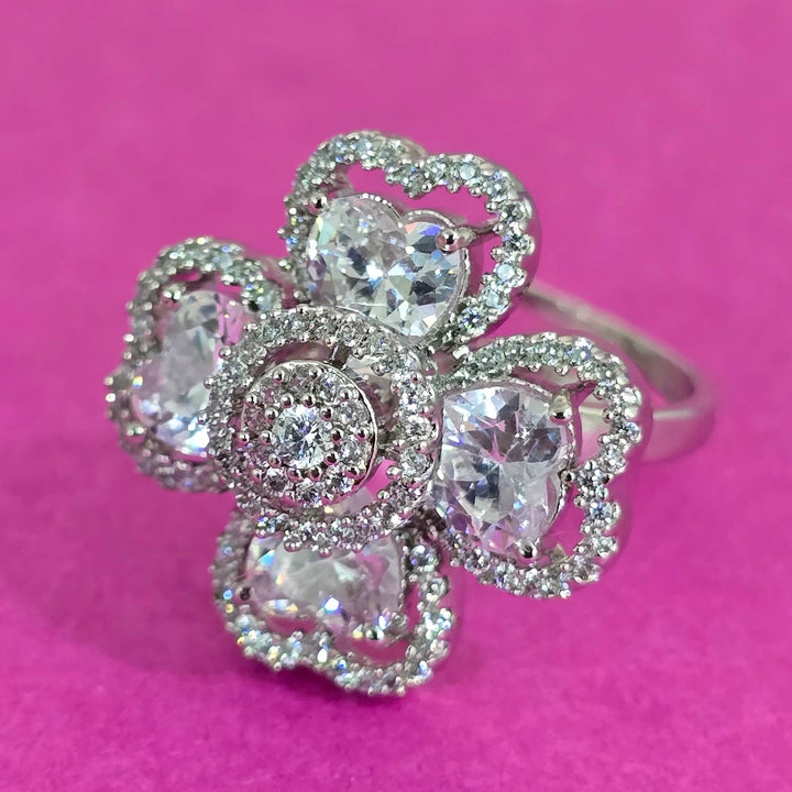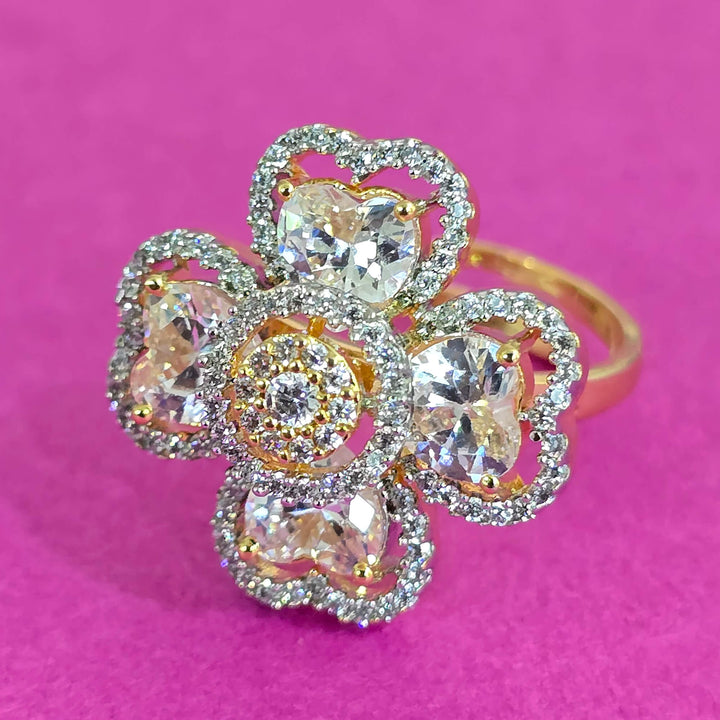 Weight: 6.0 Grams, Height = 20 mm || Width = 20 mm,Classic Ring,2 Tone Plating,Rhodium Plating,American Diamond Ring