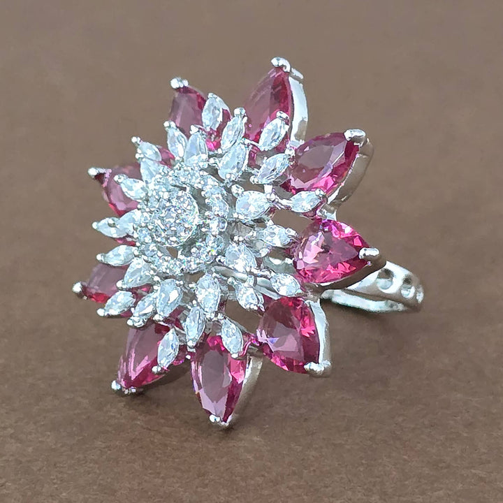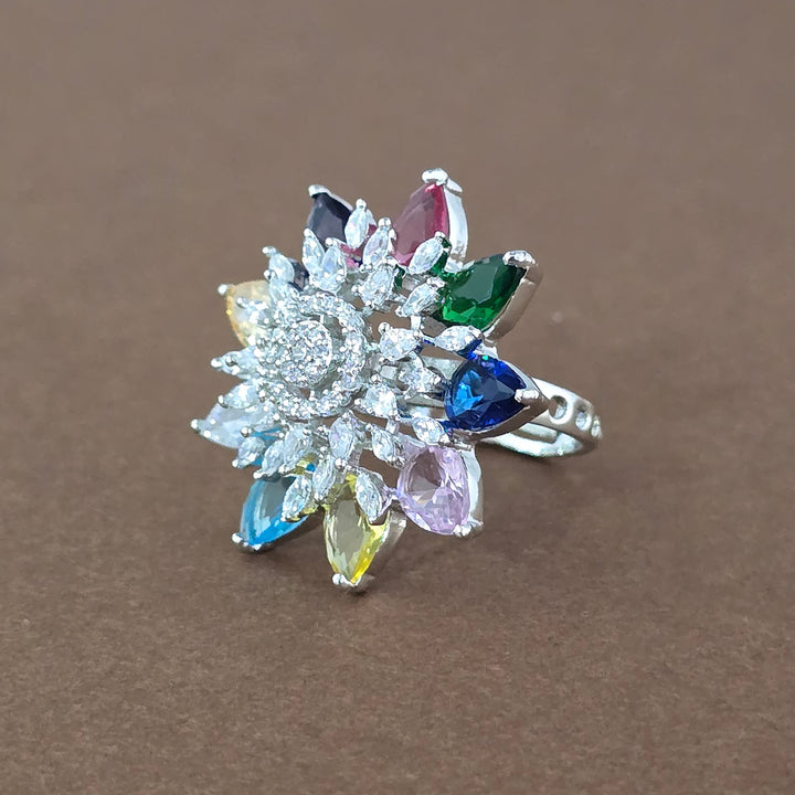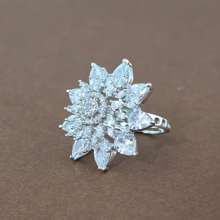 Weight: 7.0 Grams, Height = 28 Mm || Width = 28 Mm,Classic Ring,Rhodium Plating,American Diamond Ring
