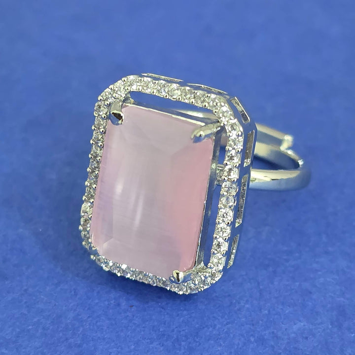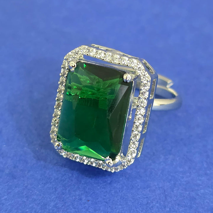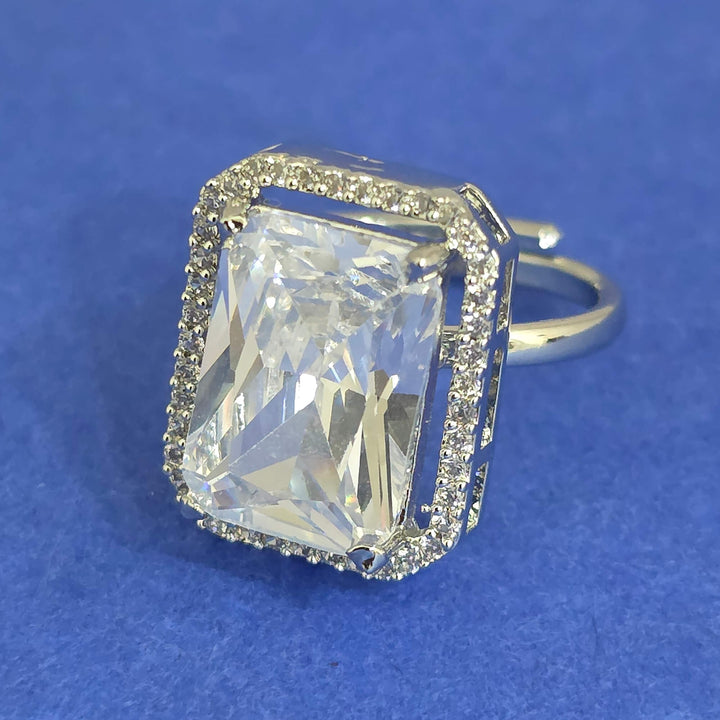 Weight: 6.0 Grams, Height = 19 mm || Width = 16 mm,Classic Ring,Rhodium Plating,American Diamond Ring