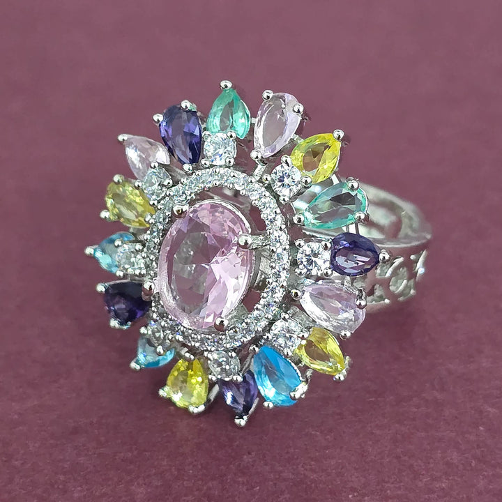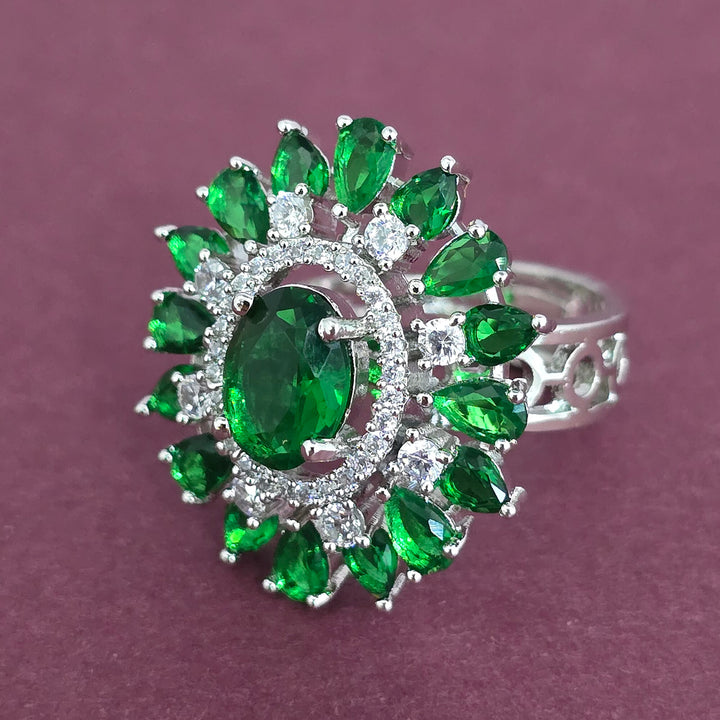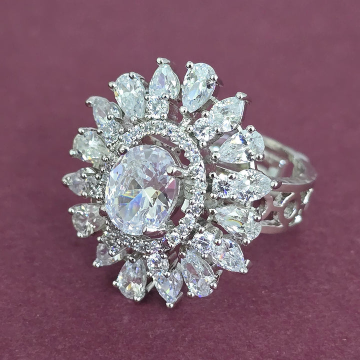 Weight: 8.0 Grams, Height = 25 Mm || Width = 22 Mm,Classic Design,Rhodium Plating,American Diamond Ring