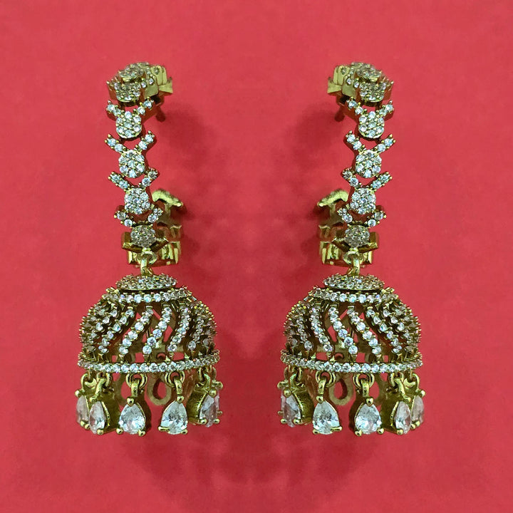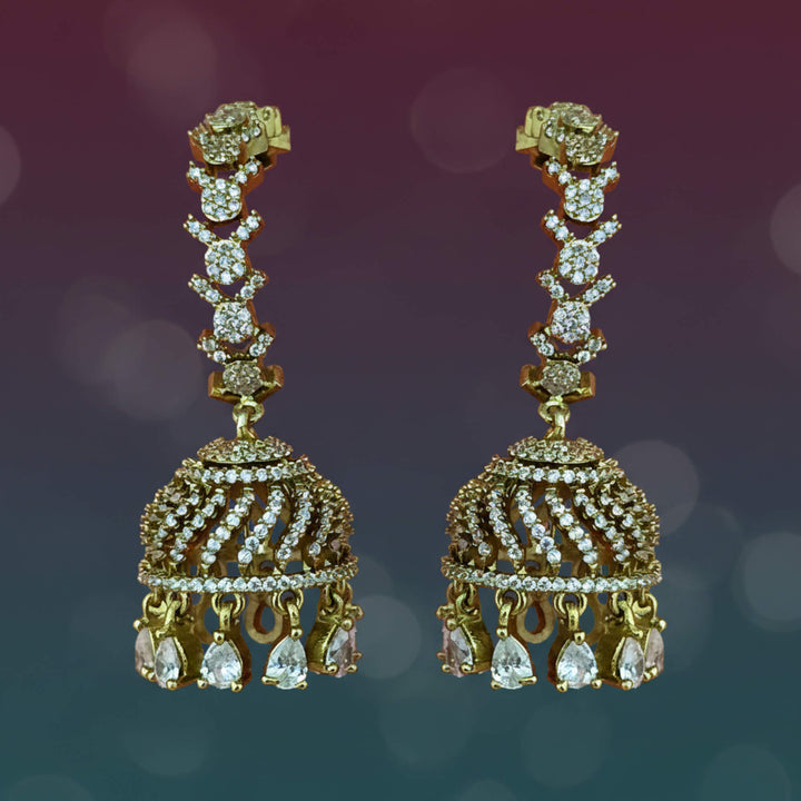 Weight: 17.0 Grams, Height = 50 Mm || Width = 18 Mm,Classic Bali,Mehndi Plating,2 Tone Plating,Rhodium Plating,American Diamond Earring
