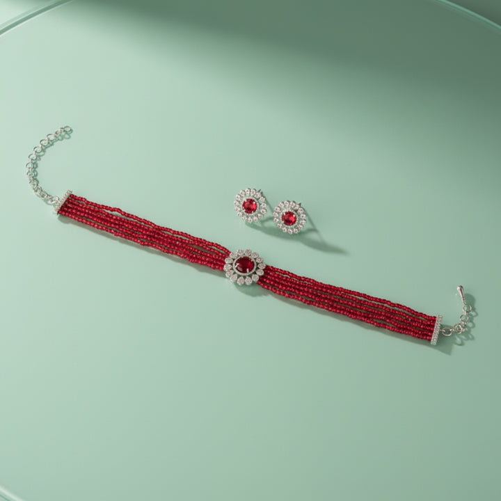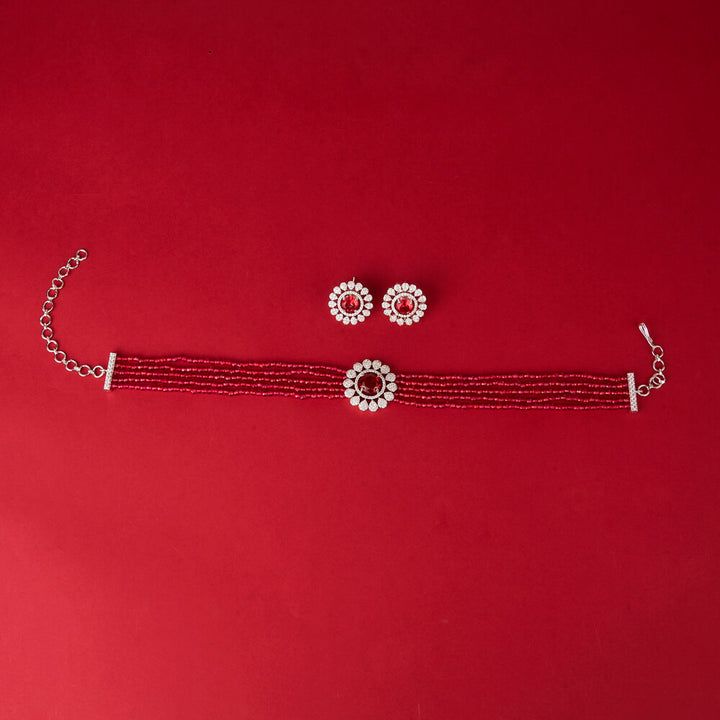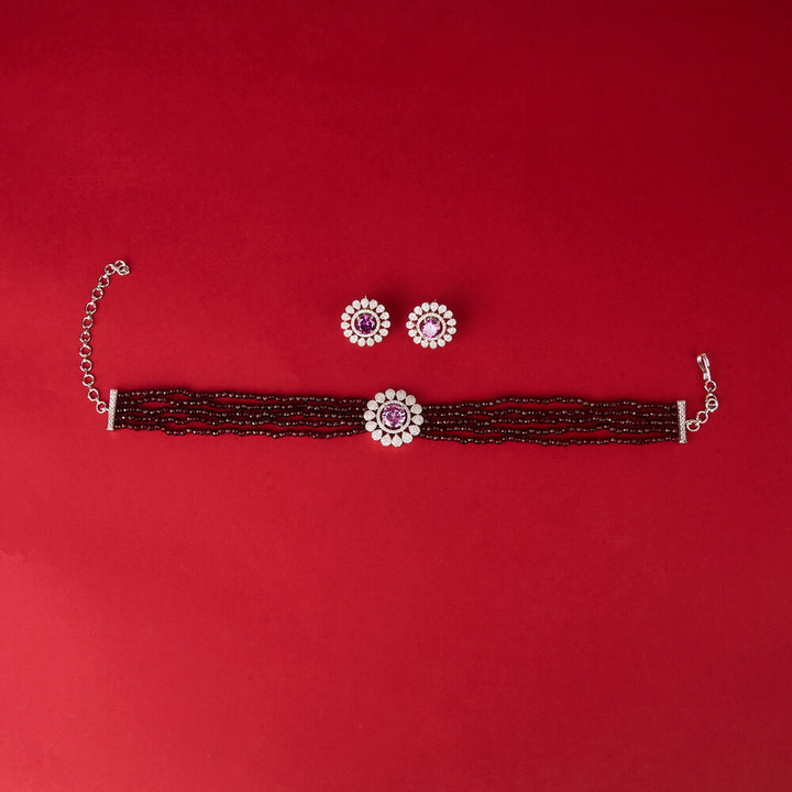 438351 Cz Bandhai Necklace Set With Rhodium Plating
