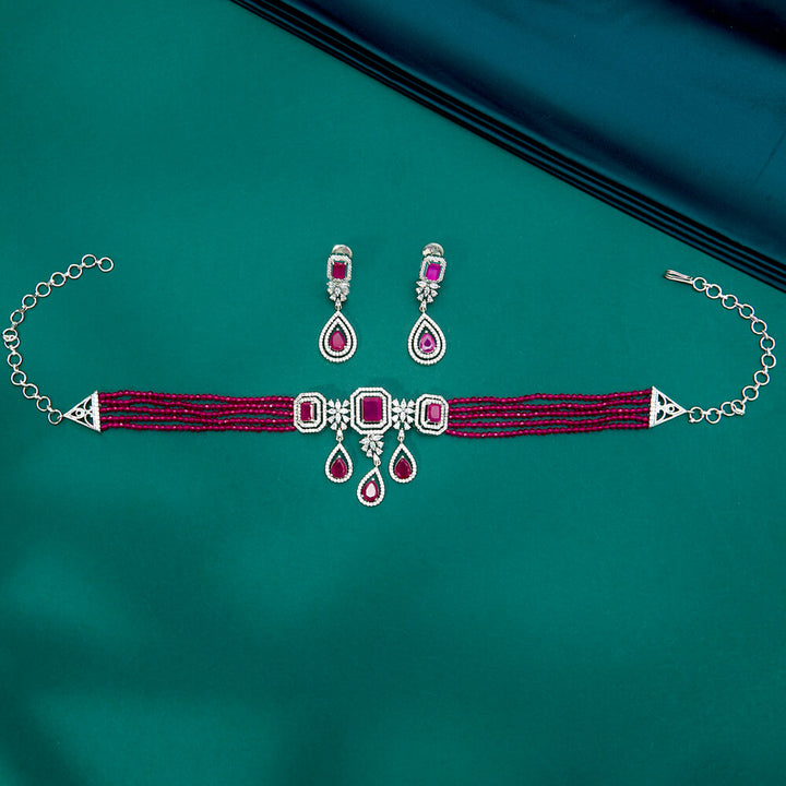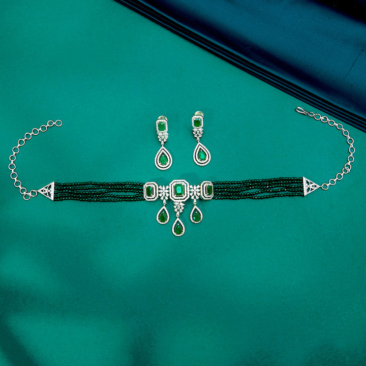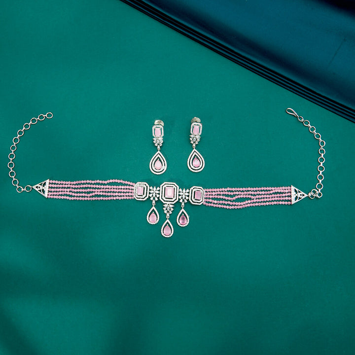 Weight: 43.0 Grams, Regular Size And Adjustable,Choker Necklace,American Diamond Necklace Set