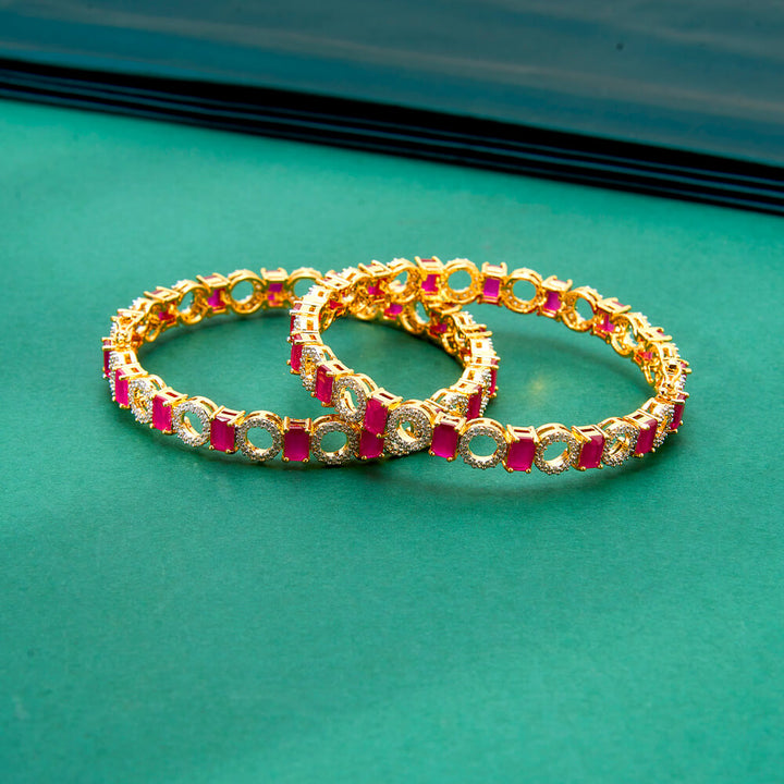 436908 Cz Classic Bangles With 2 Tone Plating