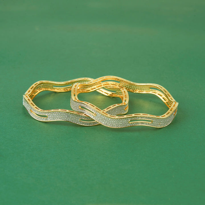 437586 Cubic Zirconia Classic Bangles With 2 Tone Mehndi Plating