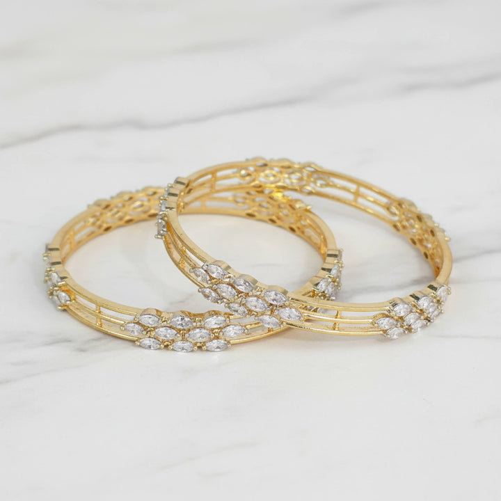 Weight: 33.0 Grams, 2 Pc Bangle,Latest Design,2 Tone Plating,American Diamond Bangle