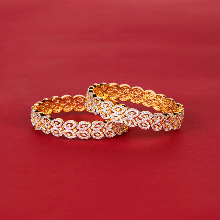 Weight: 50.0 Grams, 2 Pc Bangles,Bollywood Look,2 Tone Plating,Rhodium Plating,American Diamond Bangle
