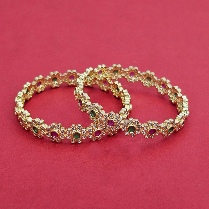 Weight: 49.0 Grams, 2 Pc Bangle,Delicate Design,Gold Plating,American Diamond Bangle