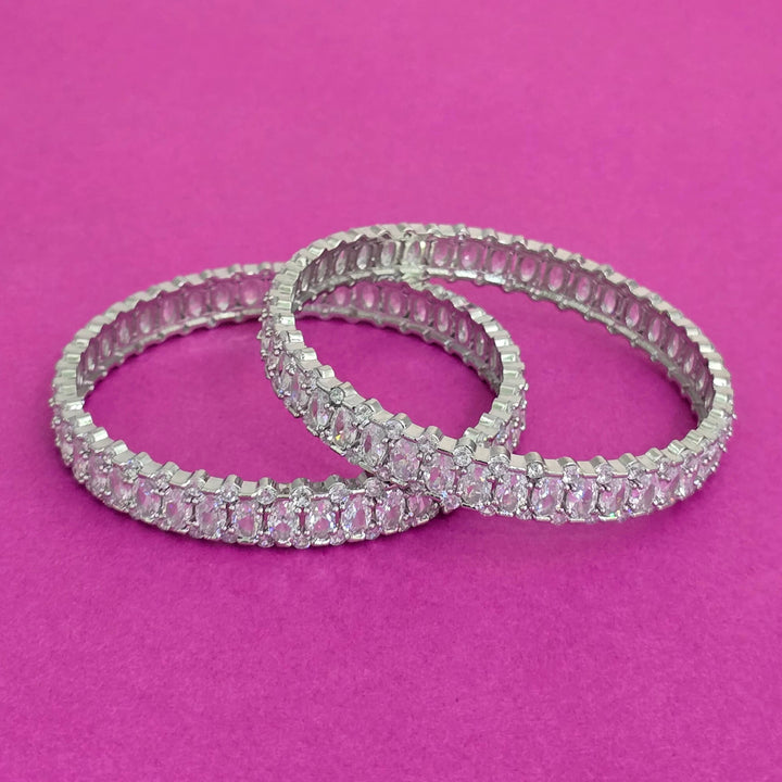 Weight: 50.0 Grams, 2 Pc Bangle,Bollywood Look,Rhodium Plating,American Diamond Bangle