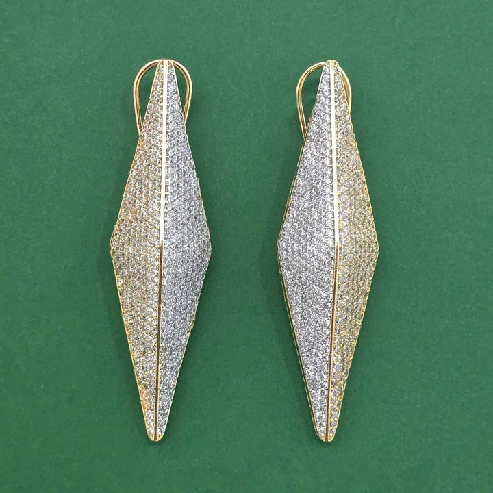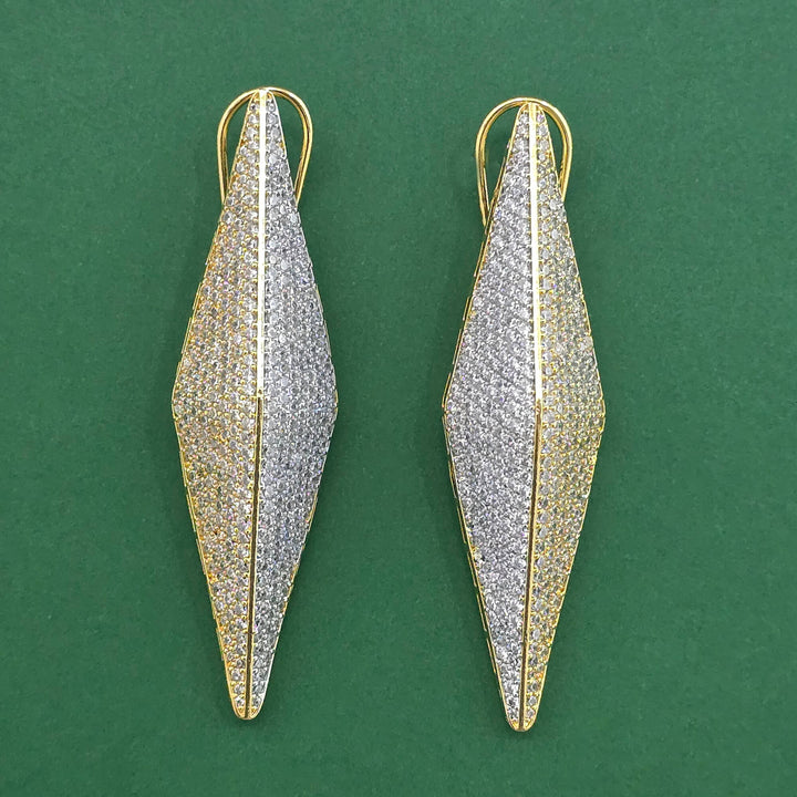 Weight: 31.0 Grams, Height = 72 Mm || Width = 18 Mm,Long Earring,Carat Plating,2 Tone Plating,American Diamond Earring