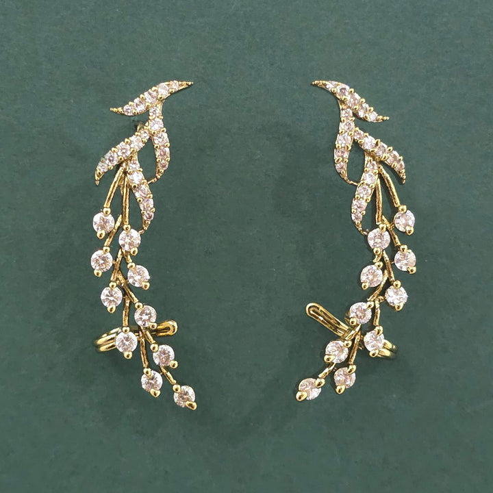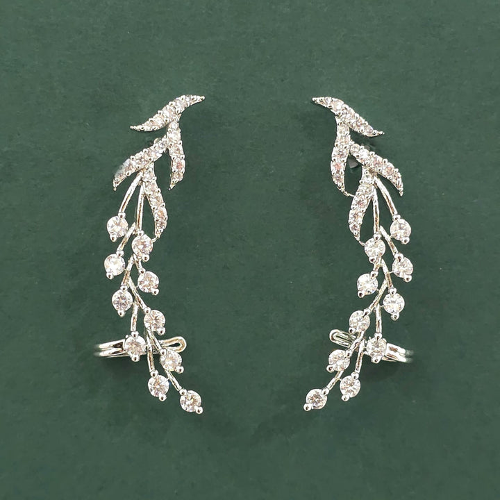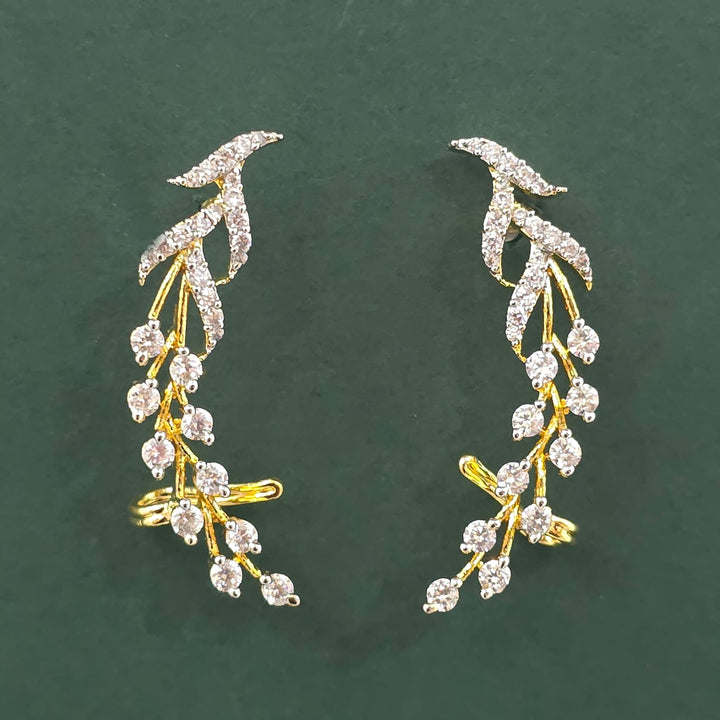 Weight: 6.0 Grams, Height = 35 mm || Width = 7 mm,Elegant Look,Mehndi Plating,2 Tone Plating,Rhodium Plating,American Diamond Earring
