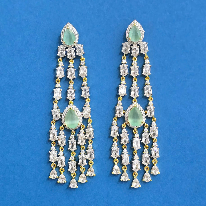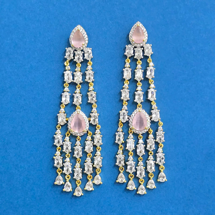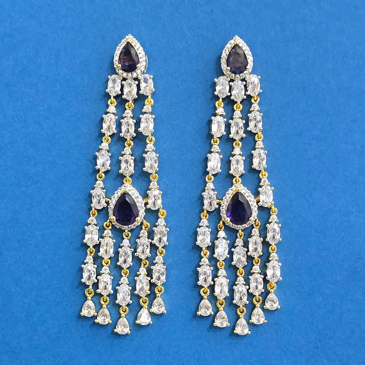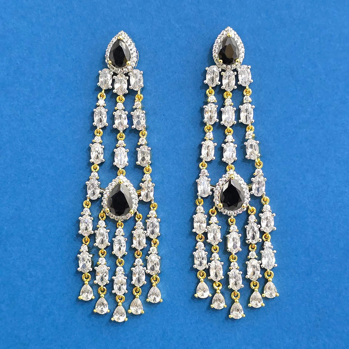 Weight: 22.0 Grams, Height = 70 mm || Width = 20 mm,Handmade Design,2 Tone Plating,American Diamond Earring