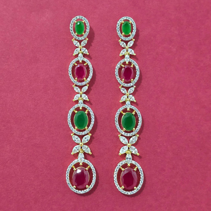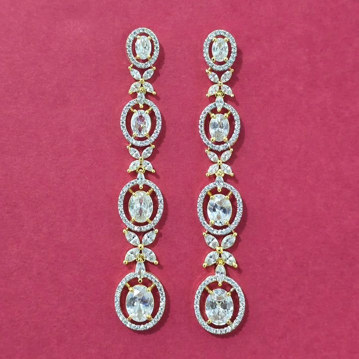 Weight: 16.0 Grams, Earring Height = 78 mm || Width = 15 mm,Bollywood Look,2 Tone Plating,American Diamond Earring