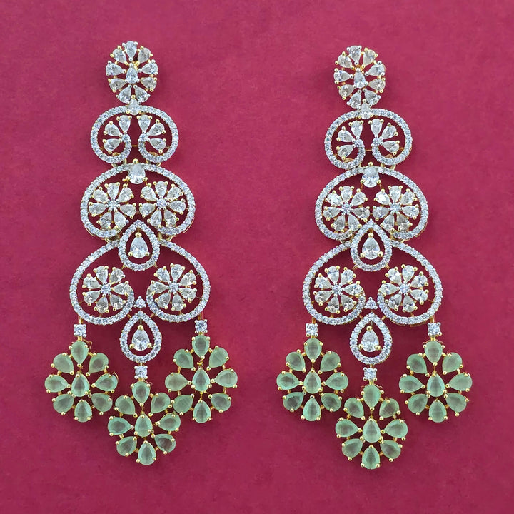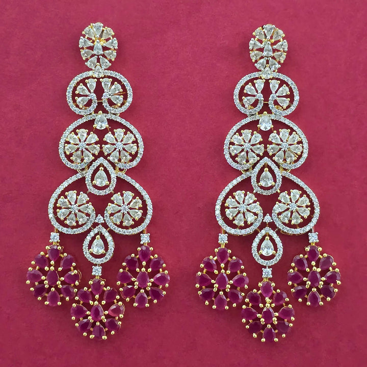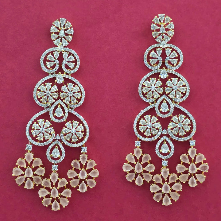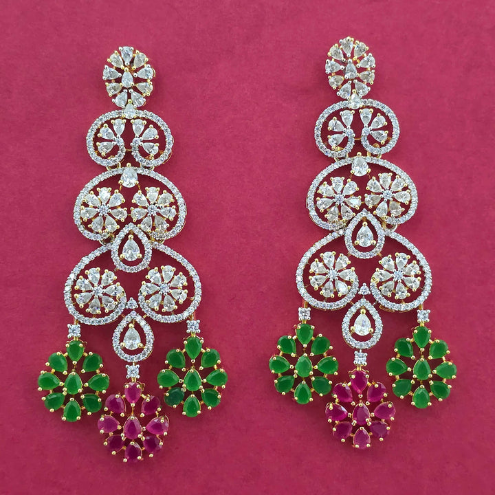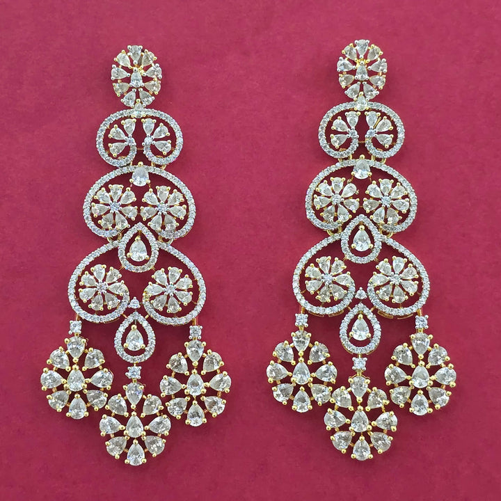 Weight: 25.0 Grams, Height = 74 mm || Width = 35 mm,Long Earring,2 Tone Plating,American Diamond Earring