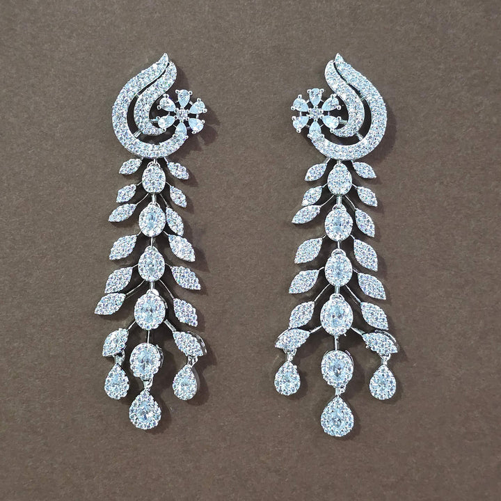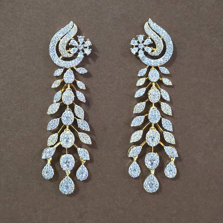 Weight: 17.0 Grams, Height = 65 Mm || Width = 18 Mm,Latest Design,2 Tone Plating,Rhodium Plating,American Diamond Earring