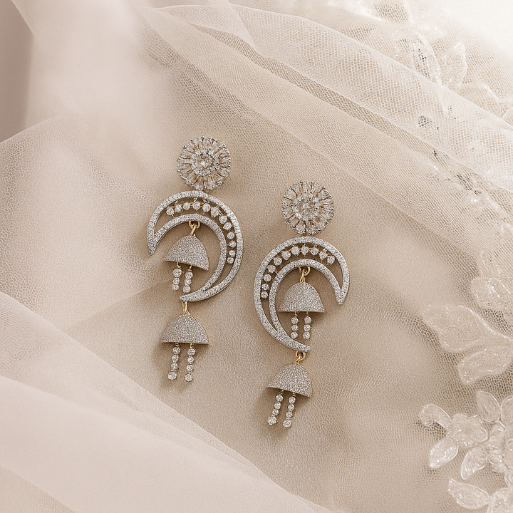 Weight: 18.0 Grams, Height = 60 mm || Width = 23 mm,Trendy Design,American Diamond Earring