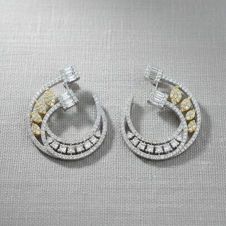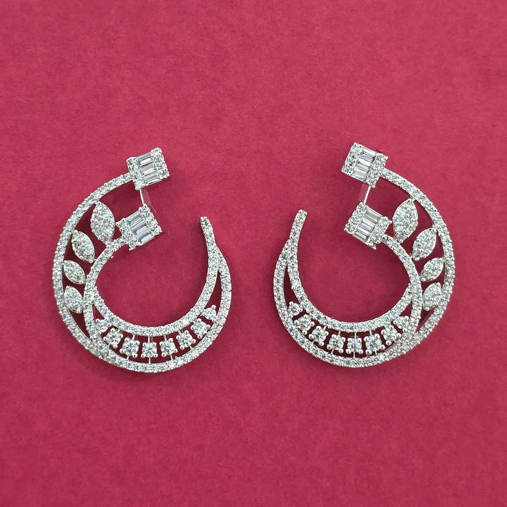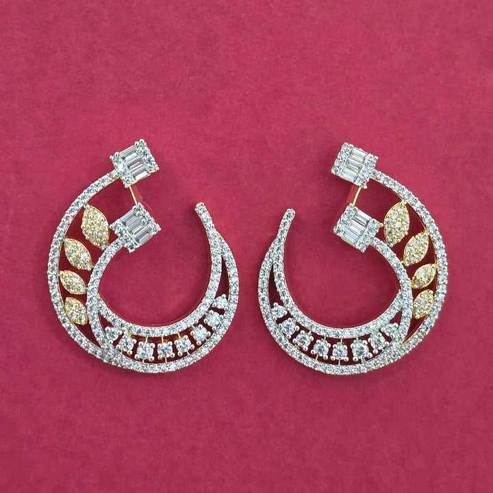 Weight: 12.0 Grams, Height = 33 mm || Width = 26 mm,Chand Style,Carat Plating,2 Tone Plating,Rhodium Plating,American Diamond Earring