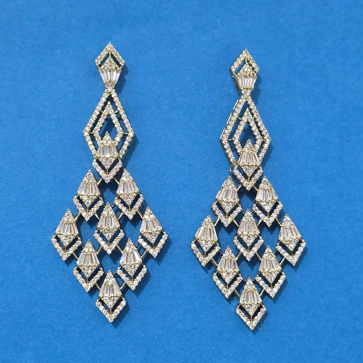 Weight: 17.0 Grams, Height = 68 mm || Width = 28 mm,Trendy Look,Mehndi Plating,2 Tone Plating,Rhodium Plating,American Diamond Earring