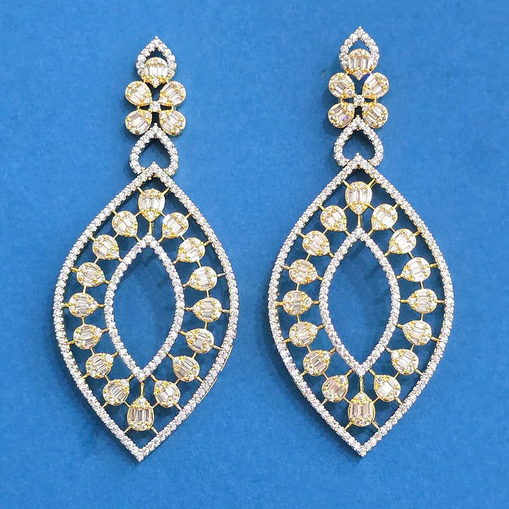 Weight: 18.0 Grams, Height = 70 mm || Width = 30 mm,Elegant Look,Mehndi Plating,2 Tone Plating,Rhodium Plating,American Diamond Earring