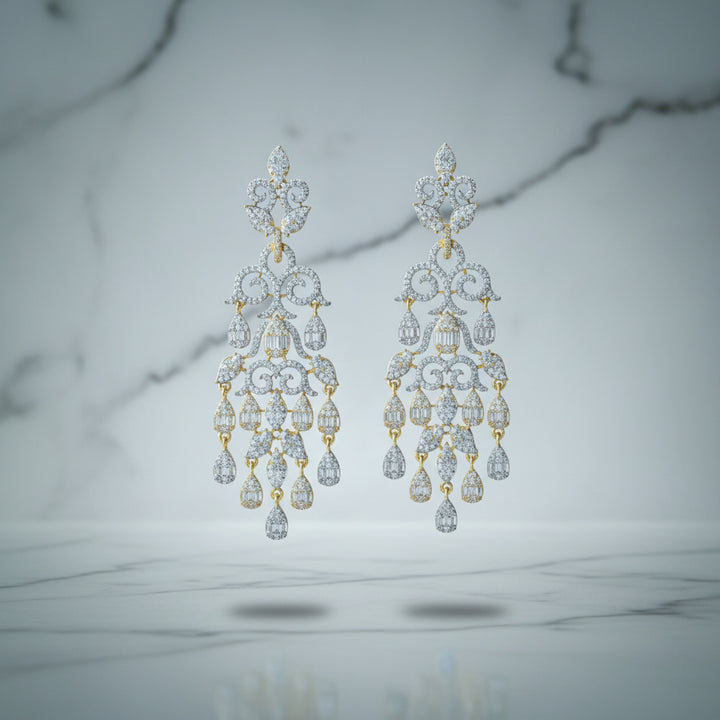 Weight: 23.0 Grams, Height = 75 Mm || Width = 25 Mm,Trendy Design,Mehndi Plating,2 Tone Plating,Rhodium Plating,American Diamond Earring