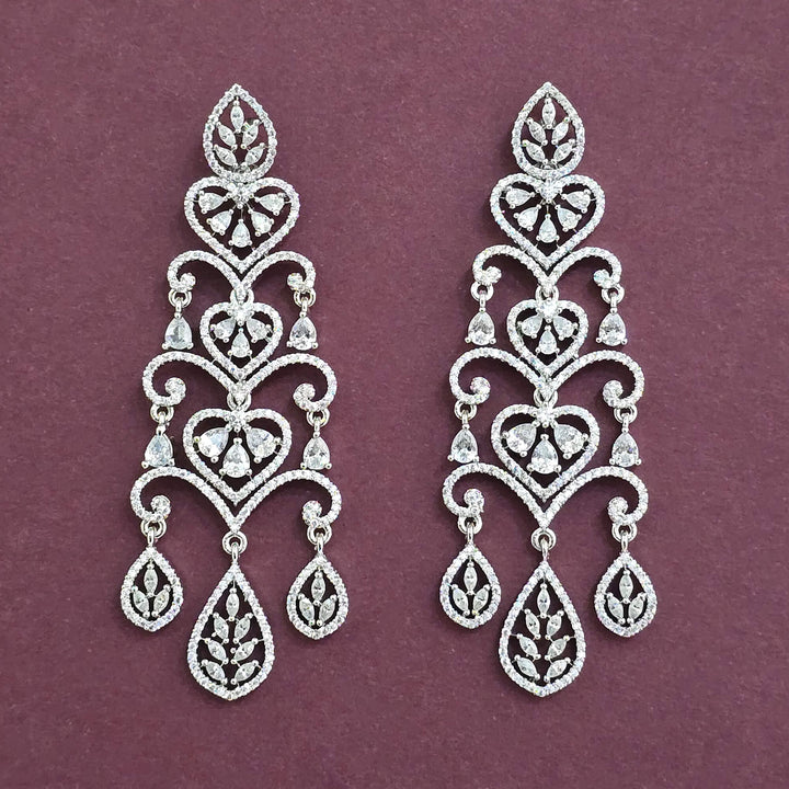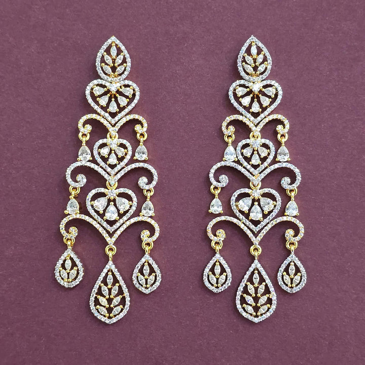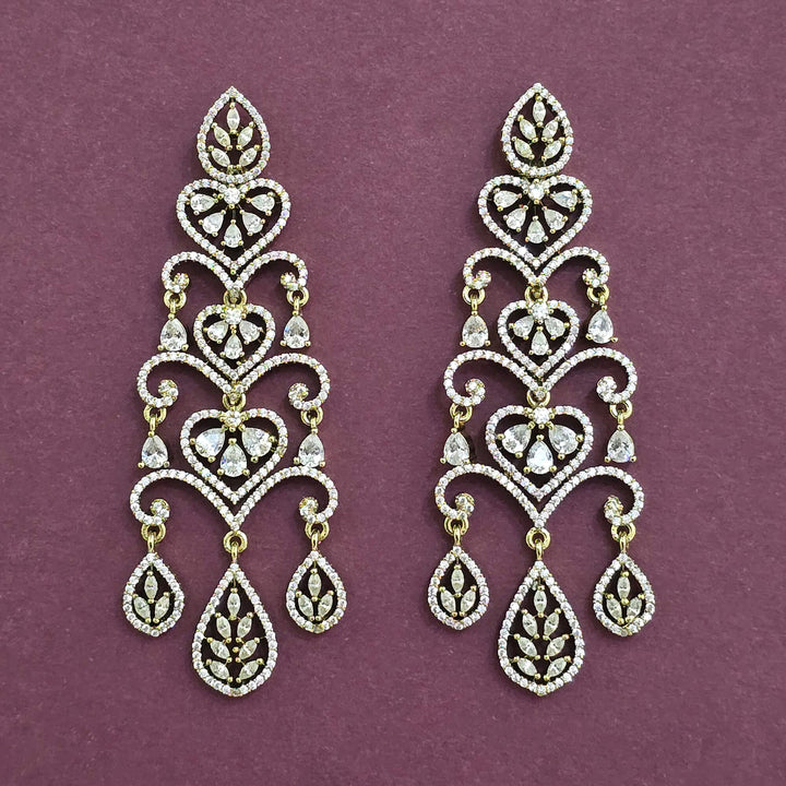 Weight: 23.0 Grams, Height = 72 Mm || Width = 28 Mm,Long Earring,Mehndi Plating,2 Tone Plating,Rhodium Plating,American Diamond Earring