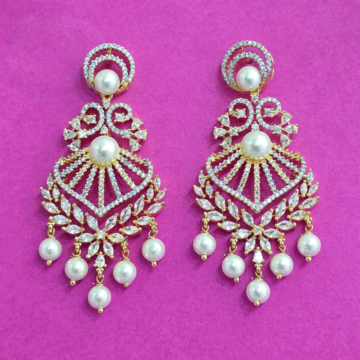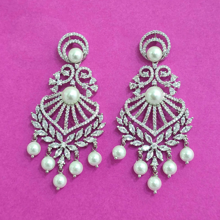 Weight: 20.0 Grams, Height = 60 mm || Width = 30 mm,Moti Earring,2 Tone Plating,Rhodium Plating,American Diamond Earring