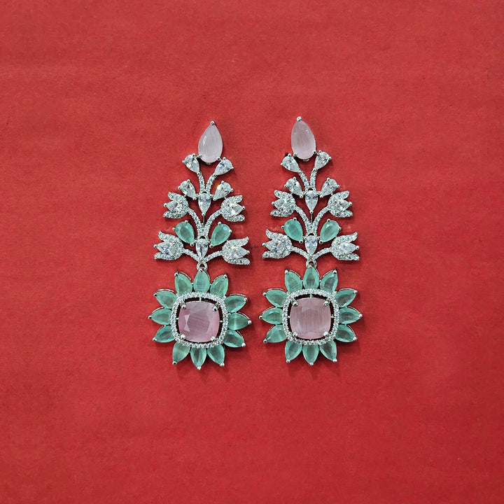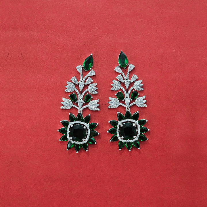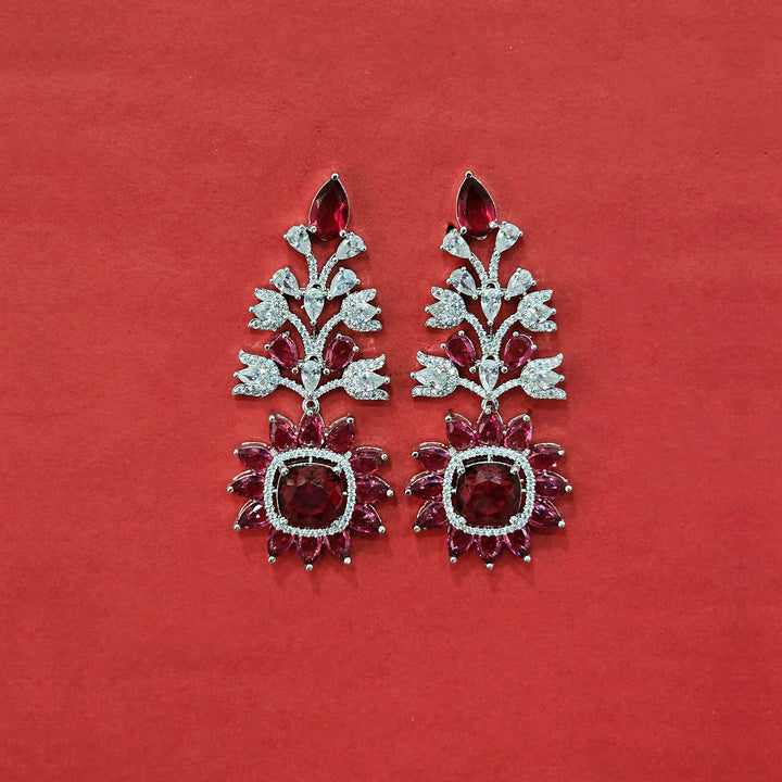Weight: 28.0 Grams, Height = 62 mm || Width = 26 mm,Latest Design,Rhodium Plating,American Diamond Earring