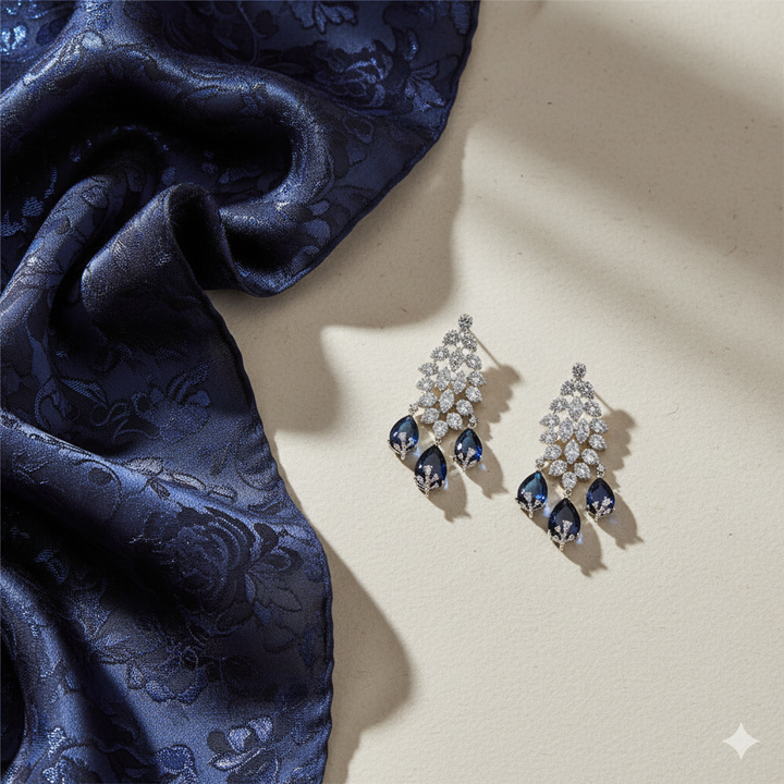 Weight: 22.0 Grams, Height = 58 mm || Width = 30 mm,Latest Design,Rhodium Plating,American Diamond Earring