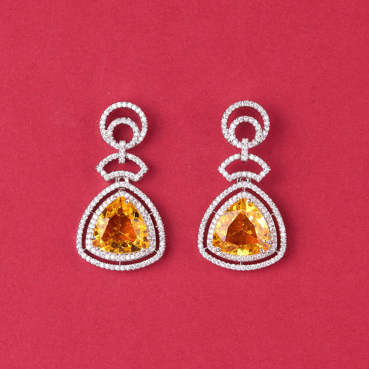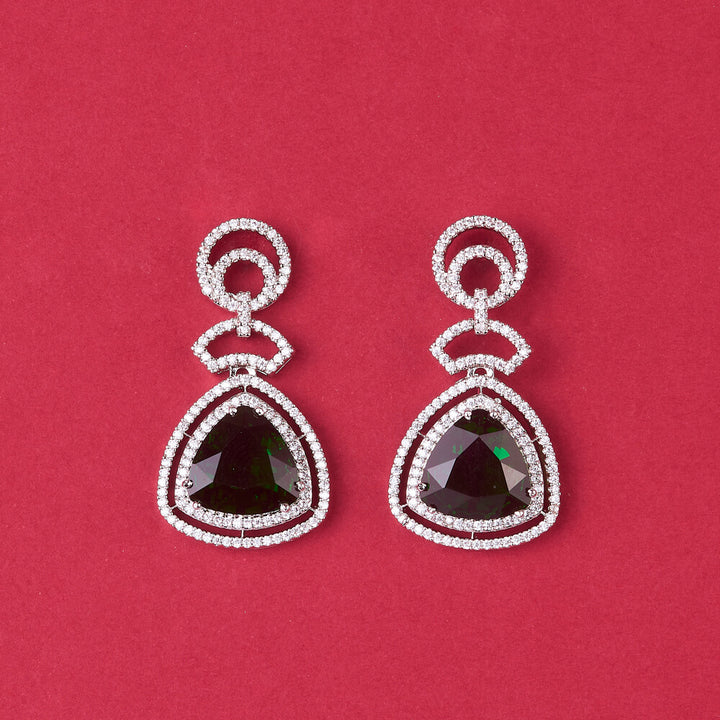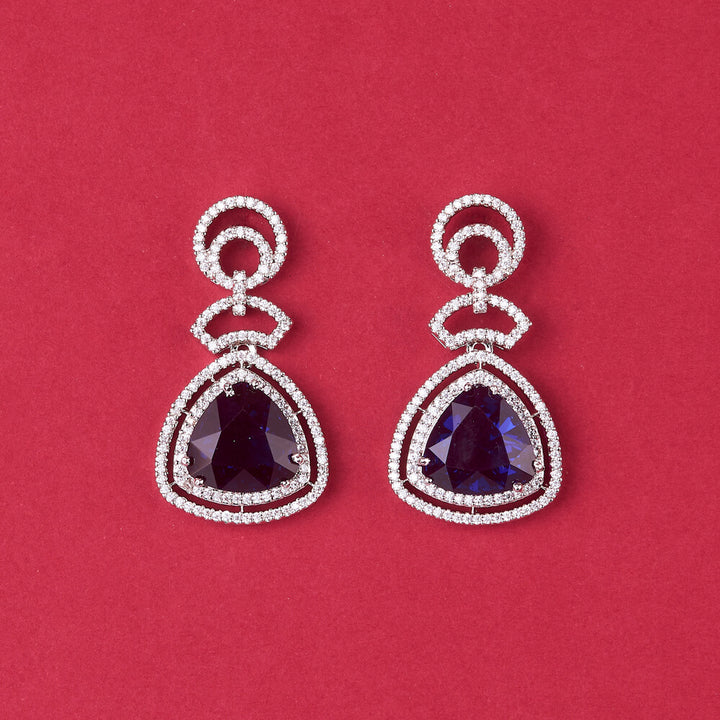 Weight: 12.0 Grams, Height = 36 mm || Width = 20 mm,Bollywood Look,Rhodium Plating,American Diamond Earring