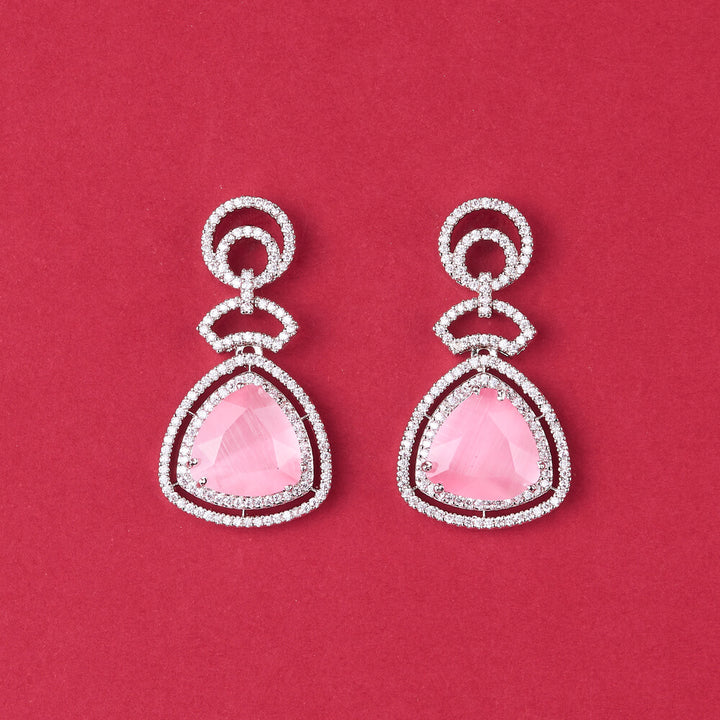 438243 Cz Classic Earring With Rhodium Plating