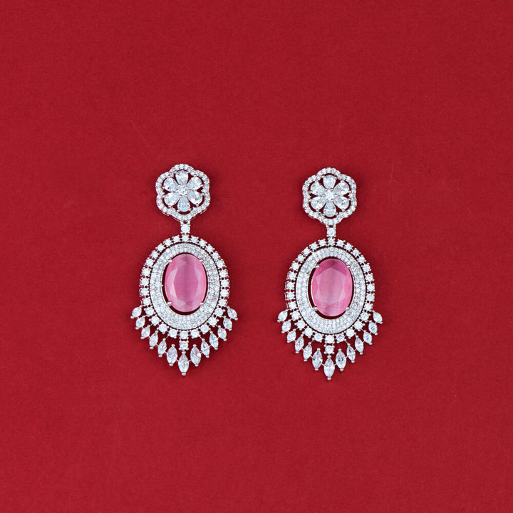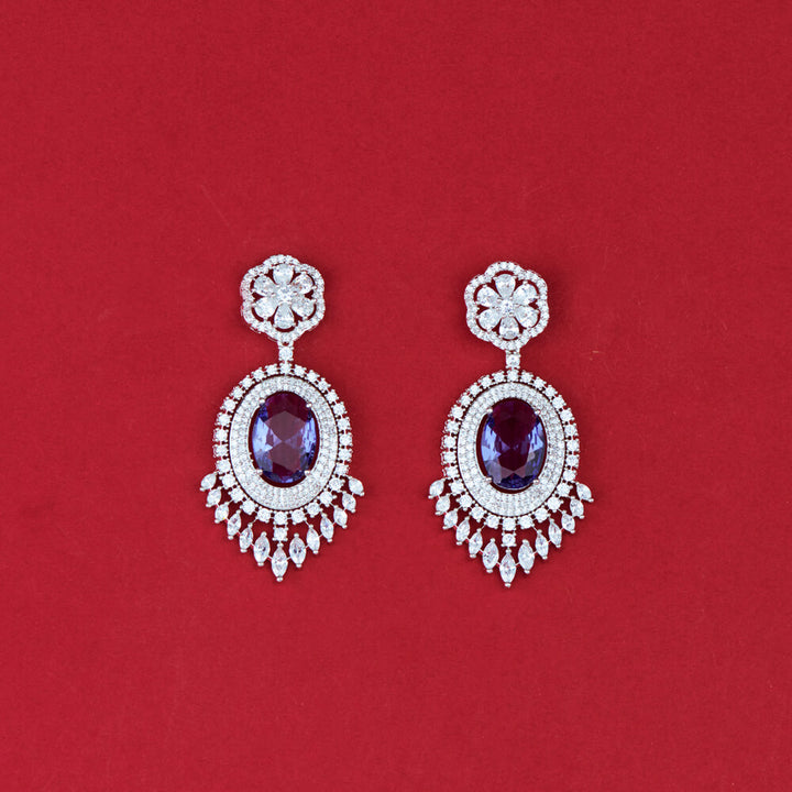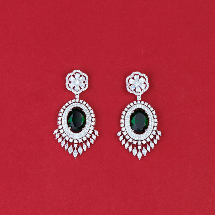 Weight: 17.0 Grams, Height = 52 mm || Width = 28 mm,Charm Earring,Rhodium Plating,American Diamond Earring