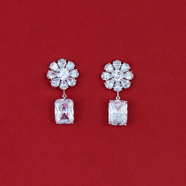 Weight: 21.0 Grams, Height = 42 mm || Width = 20 mm,Charm Earring,Rhodium Plating,American Diamond Earring