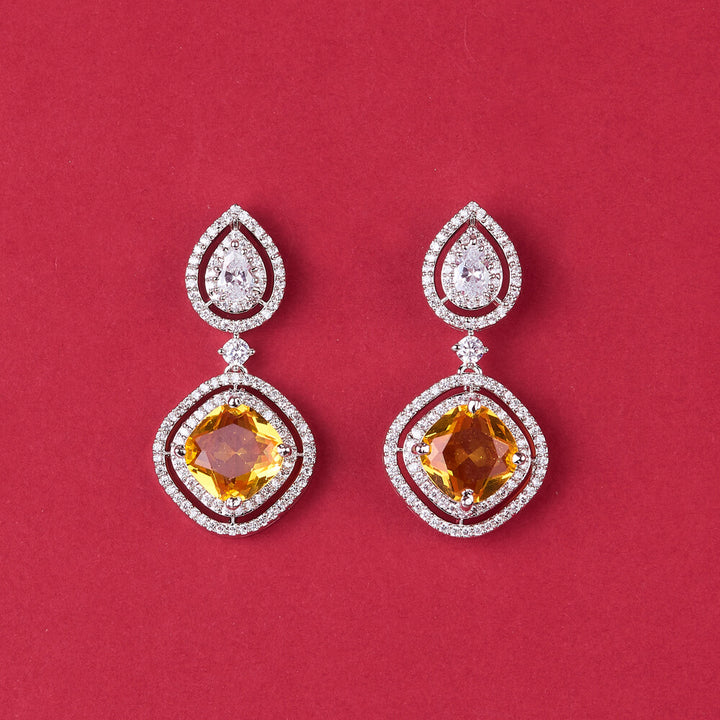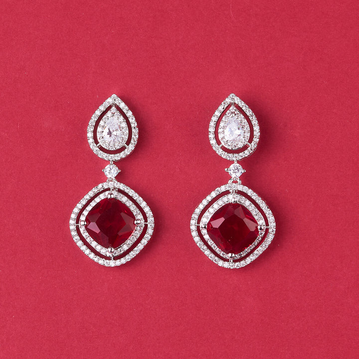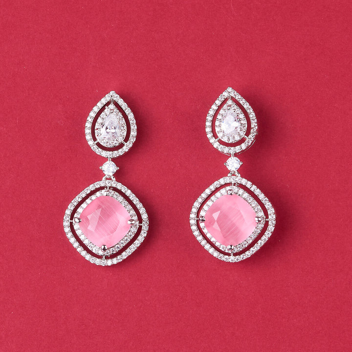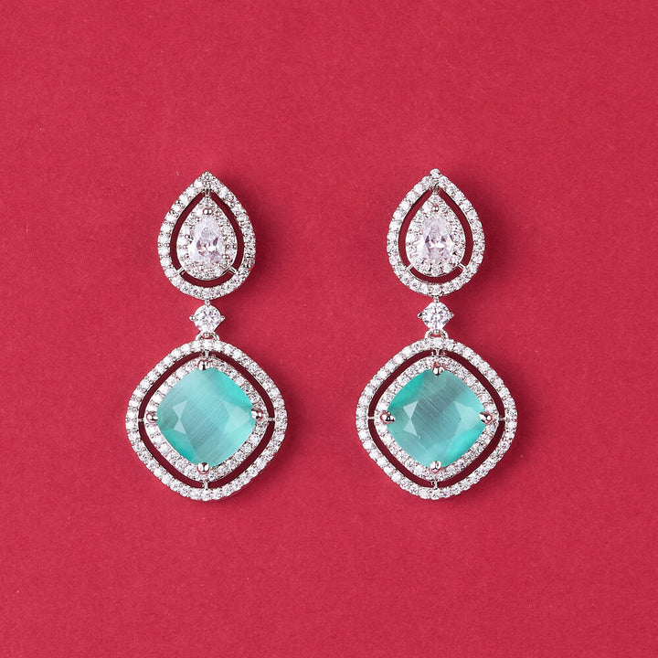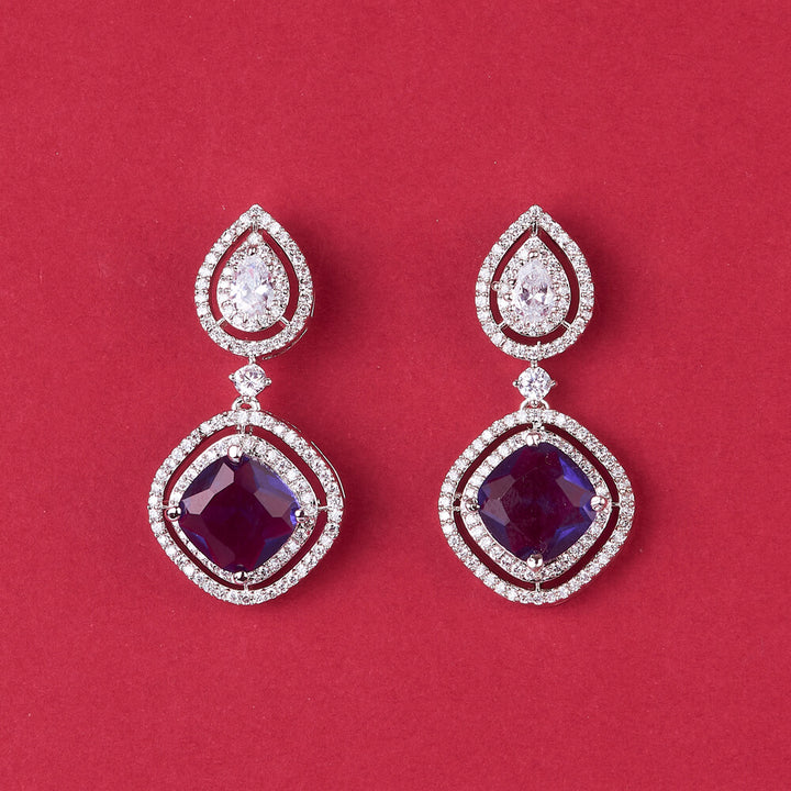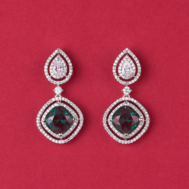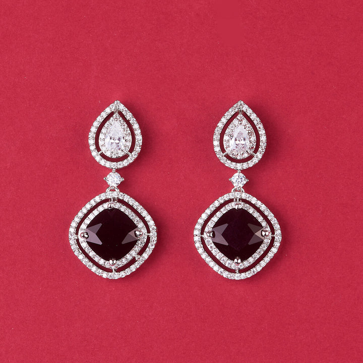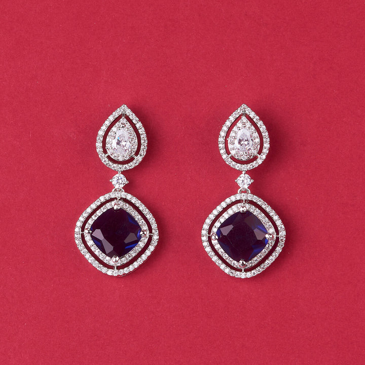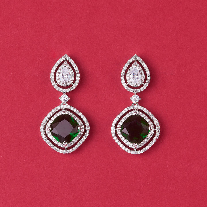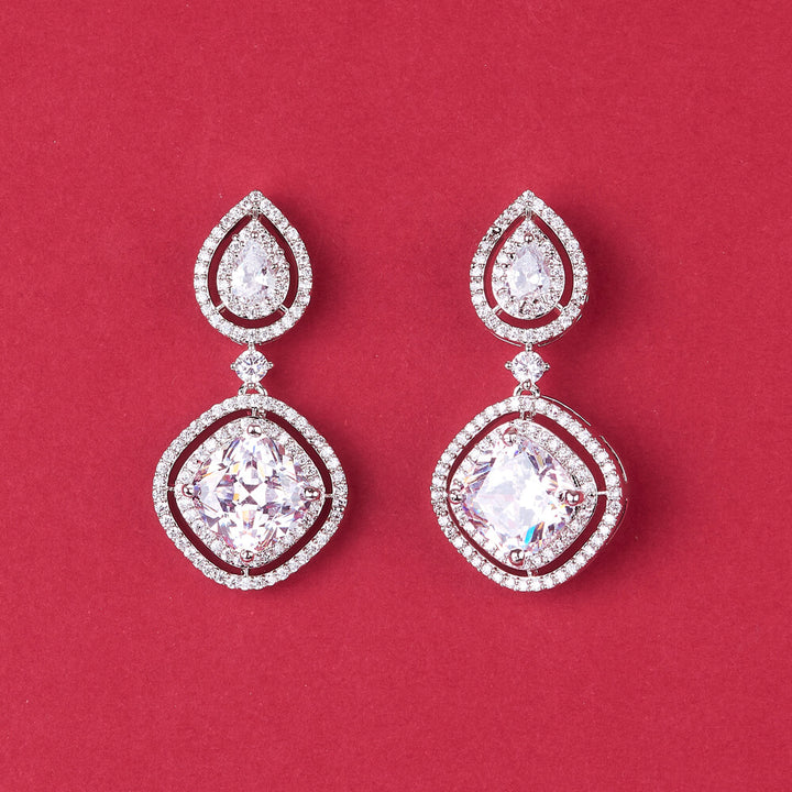 Weight: 11.0 Grams, Height = 35 mm || Width = 17 mm,Short Earring,Rhodium Plating,American Diamond Earring