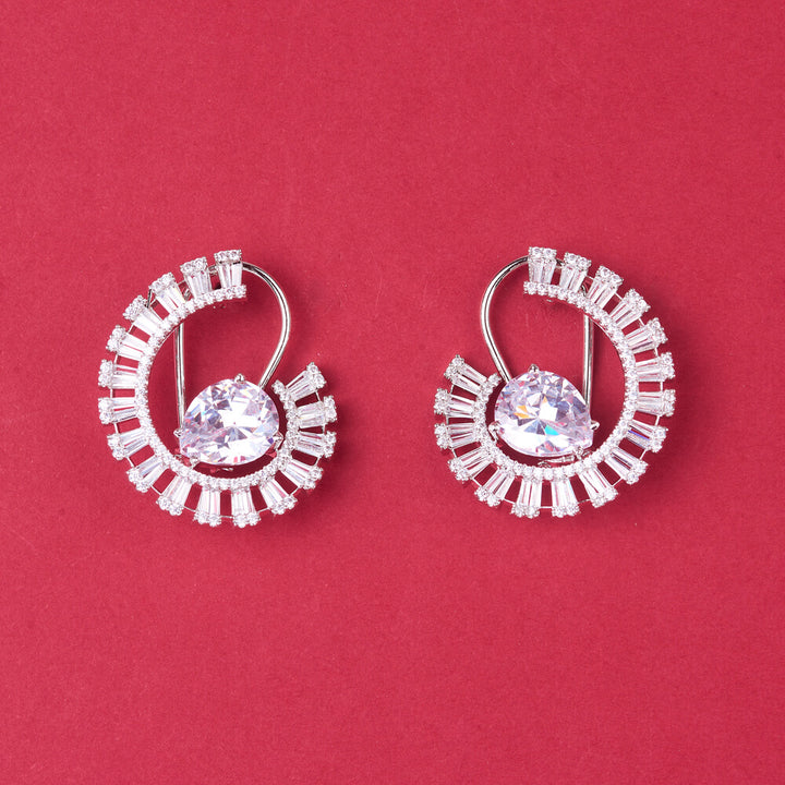438387 Cz Classic Earring With Rhodium Plating