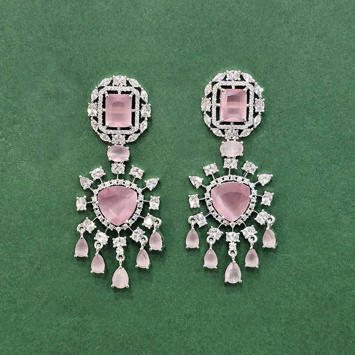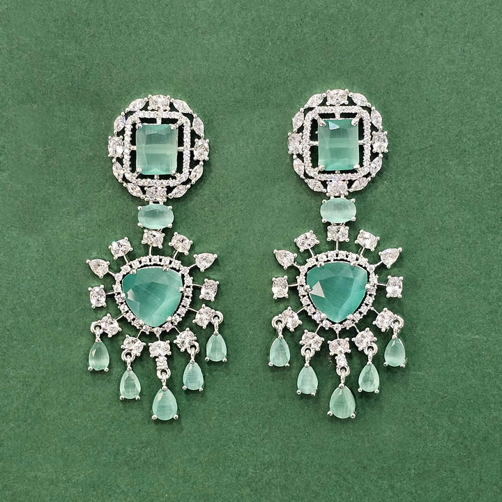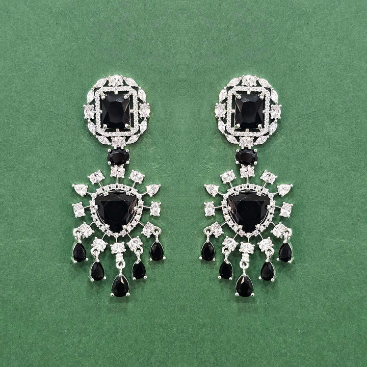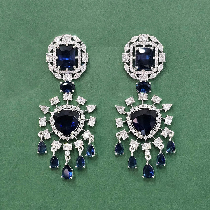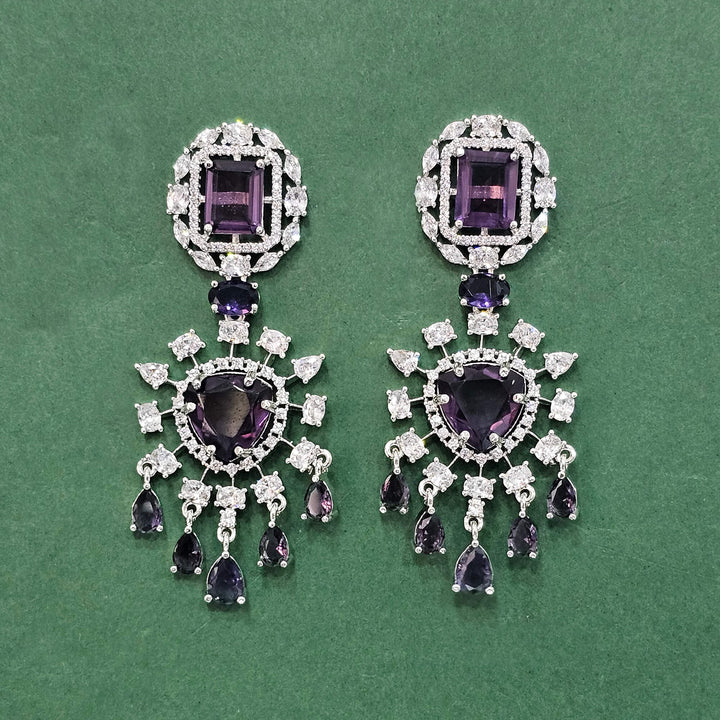 Weight: 27.0 Grams, Height = 65 mm || Width = 27 mm,Stone Earring,Rhodium Plating,American Diamond Earring