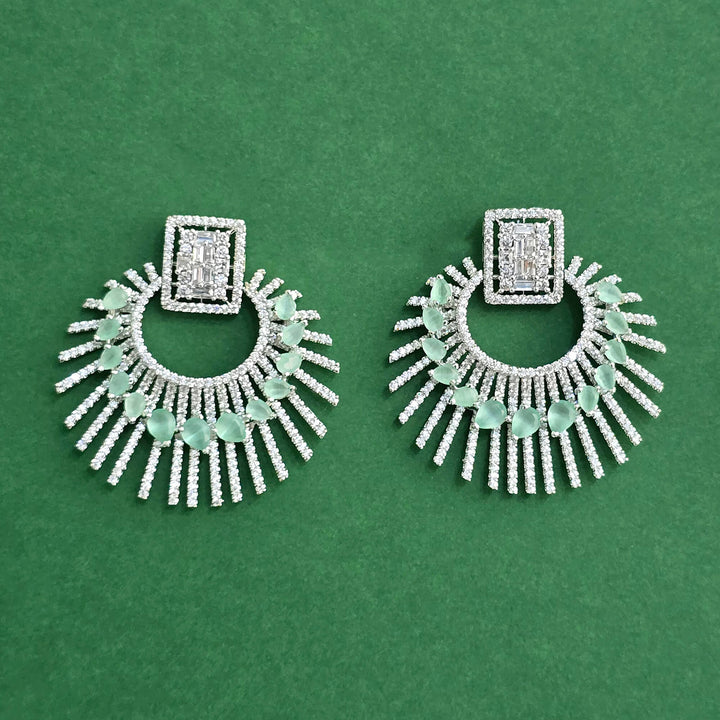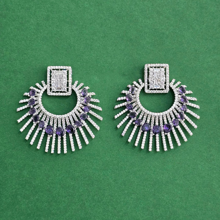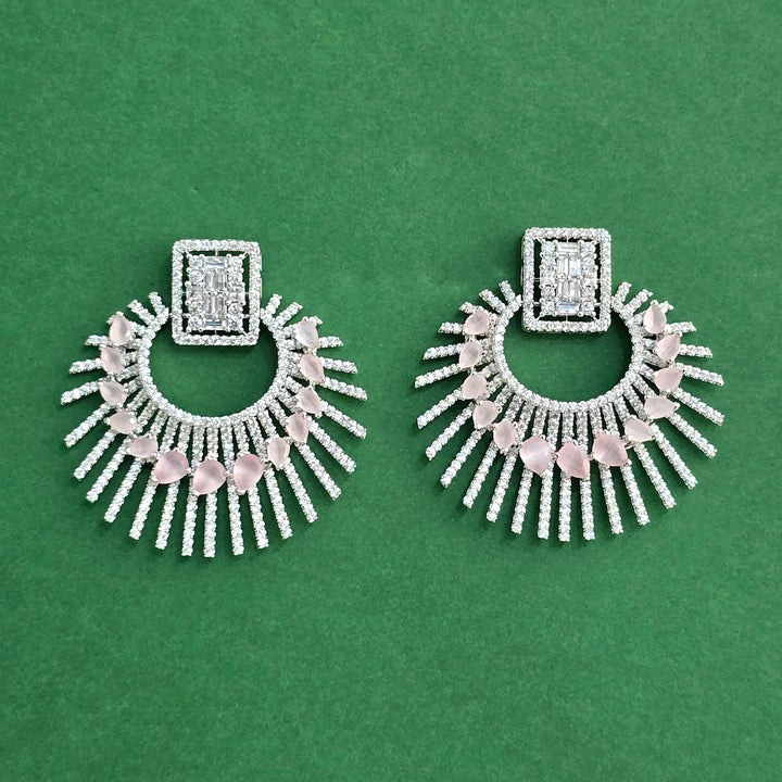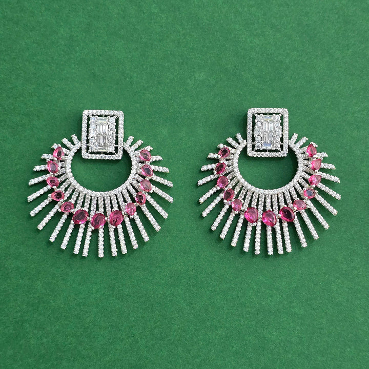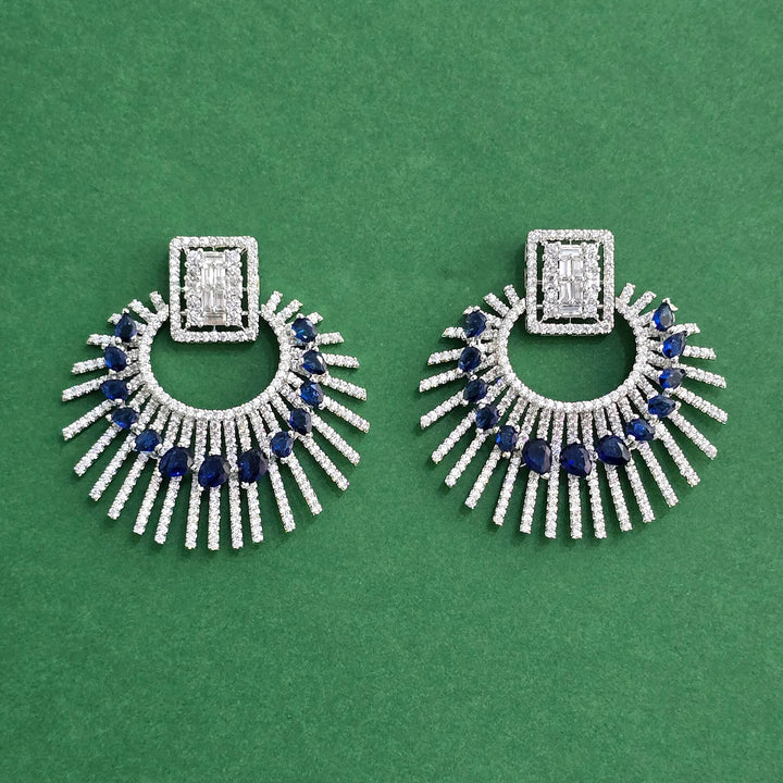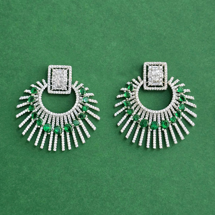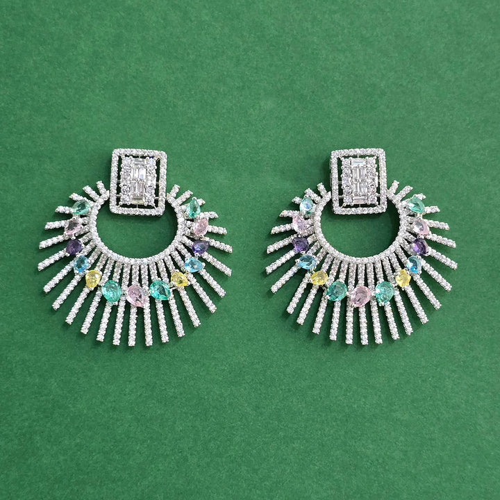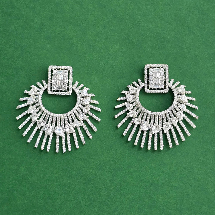 Weight: 23.0 Grams, Height = 42 mm || Width = 40 mm,Chand Style,Rhodium Plating,American Diamond Earring