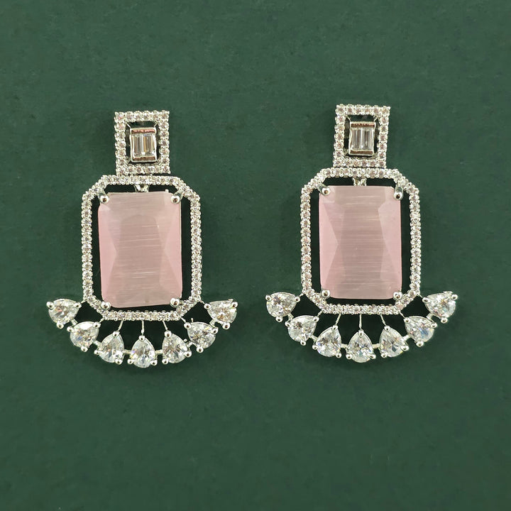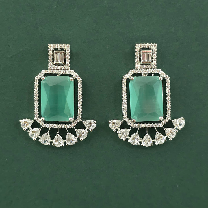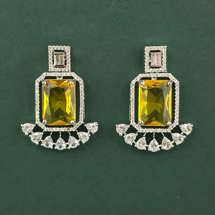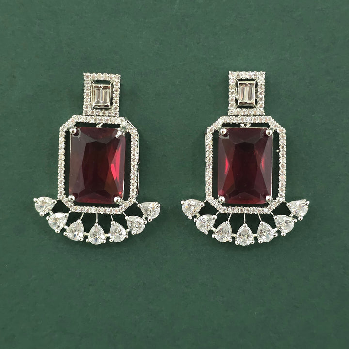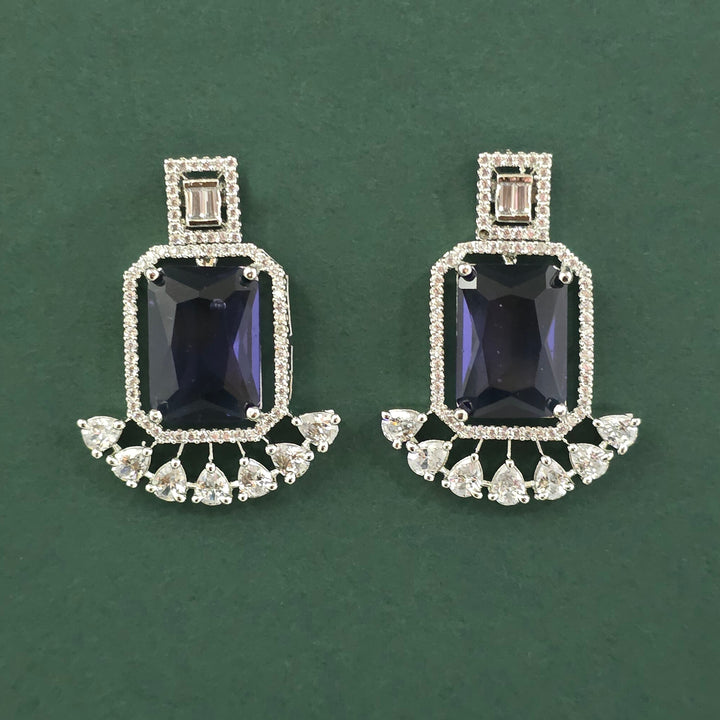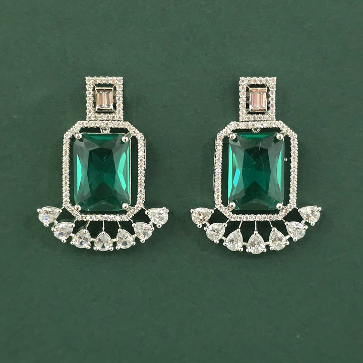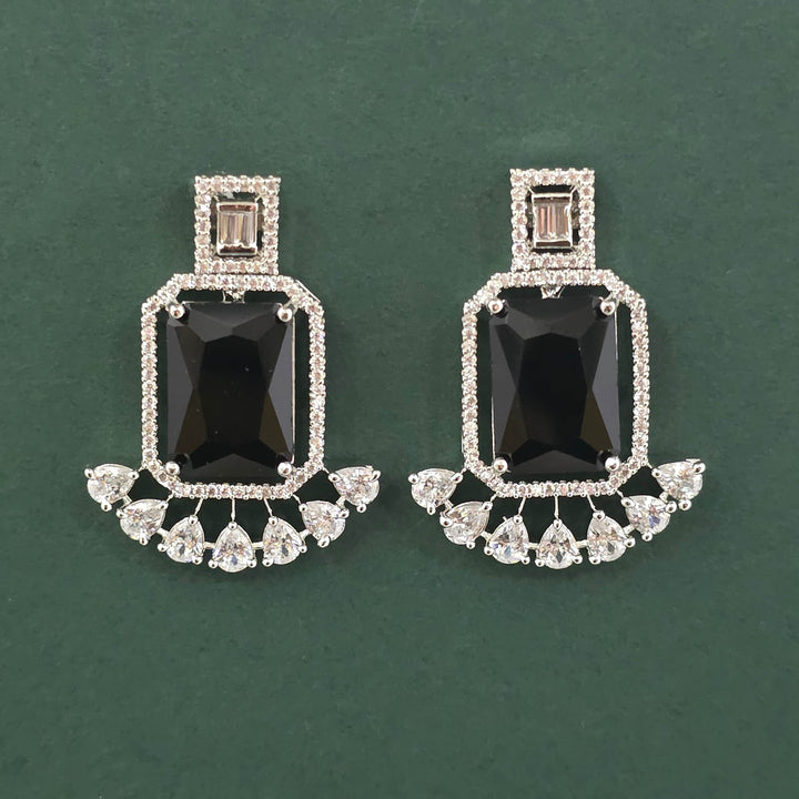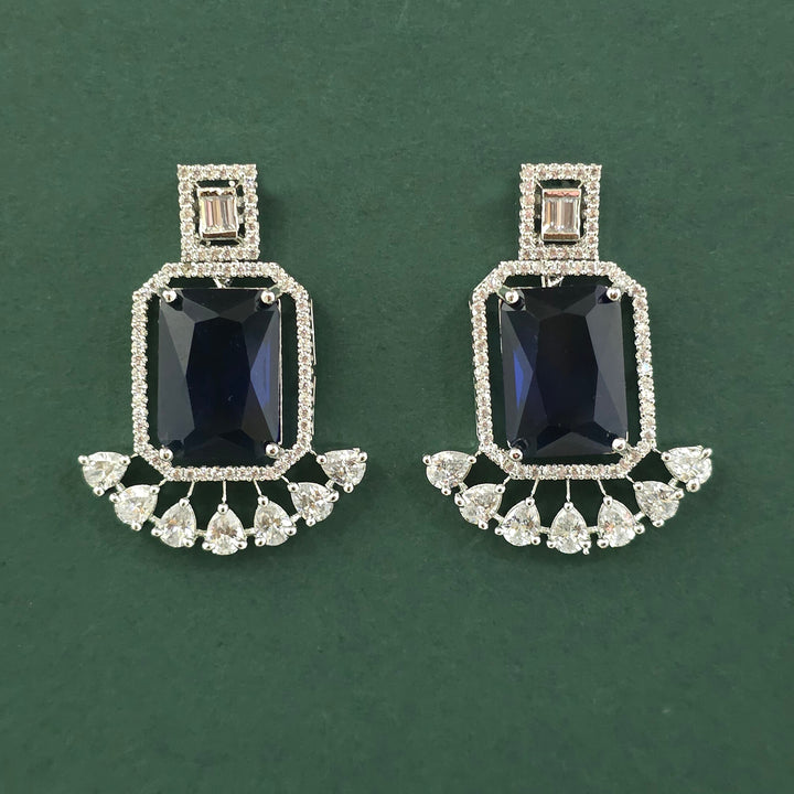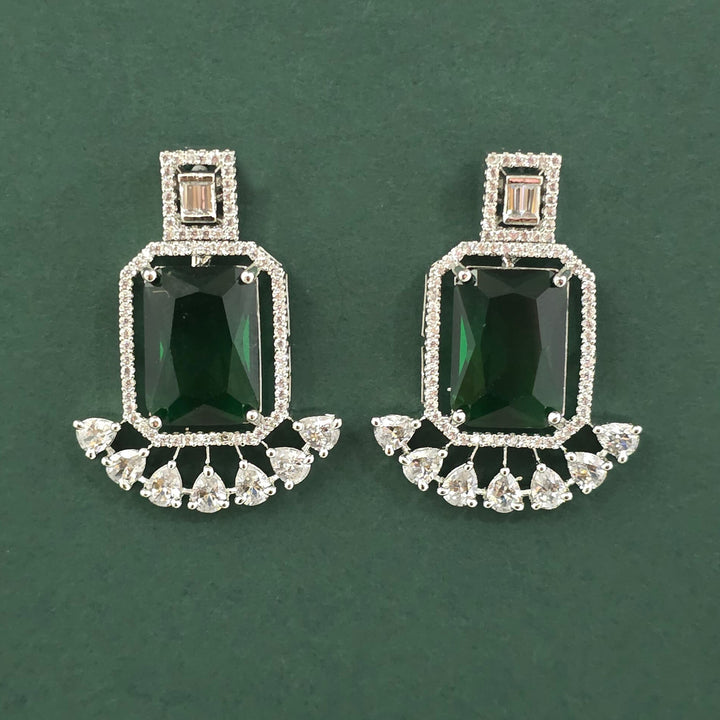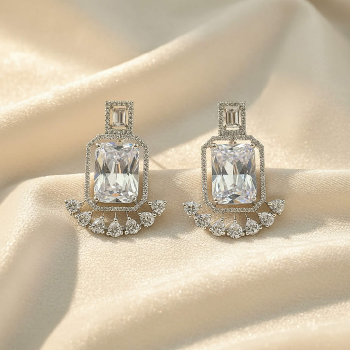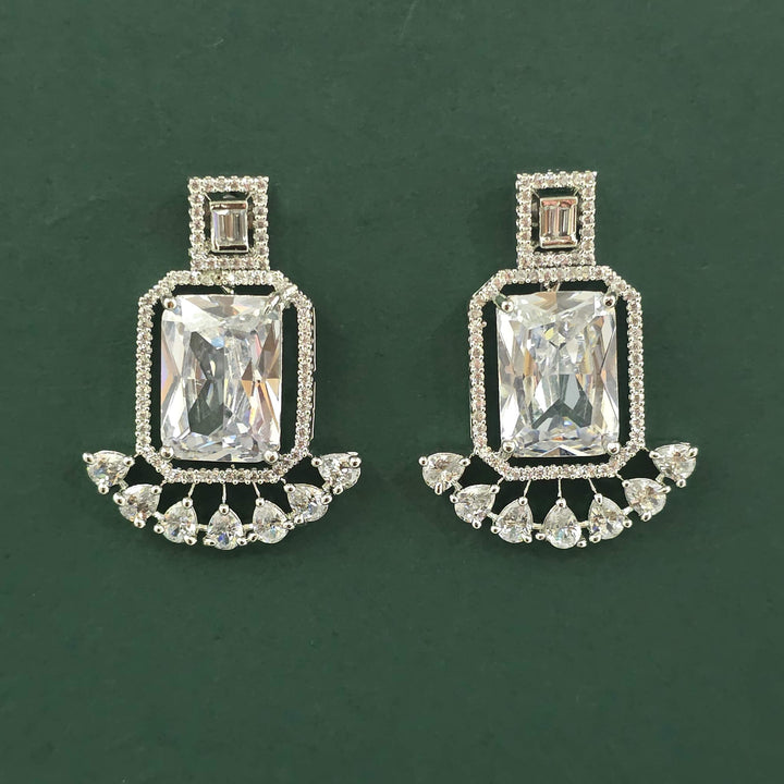 Weight: 12.0 Grams, Height = 32 mm || Width = 24 mm,Short Earring,Rhodium Plating,American Diamond Earring