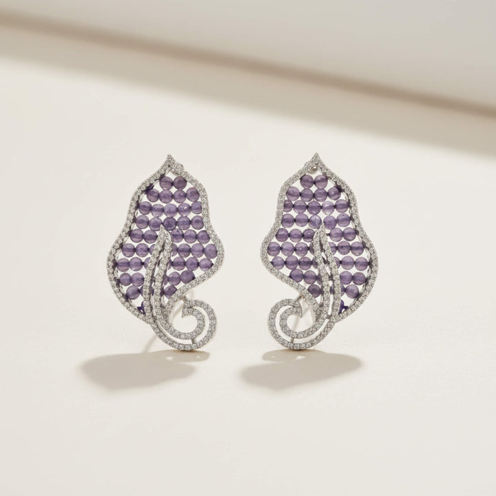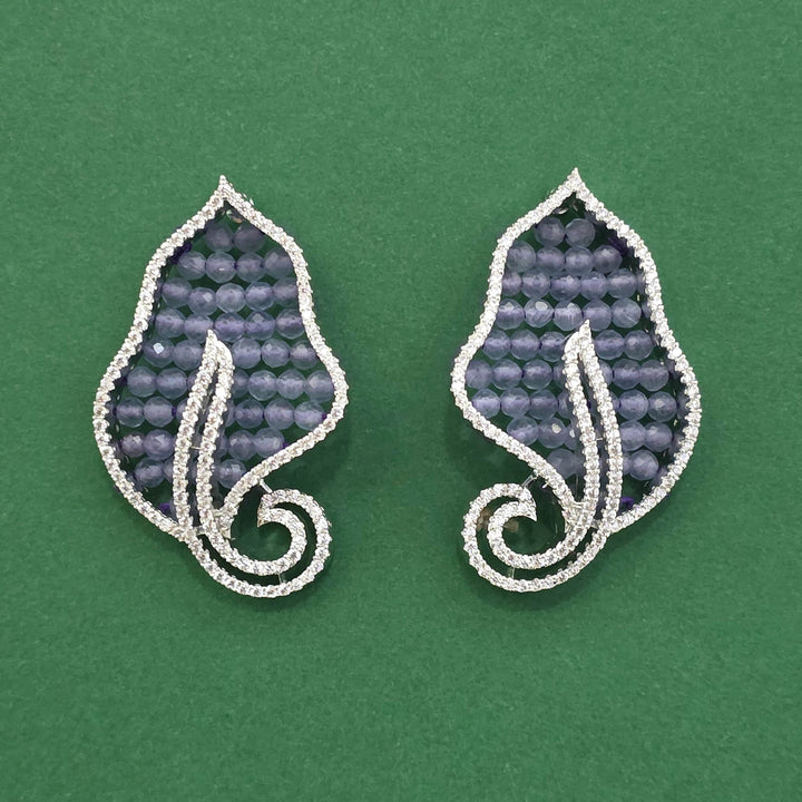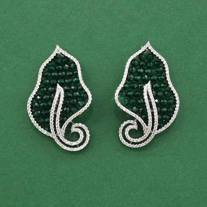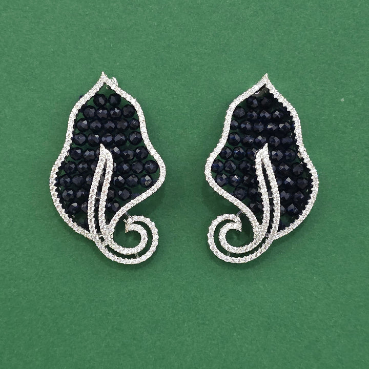Weight: 11.0 Grams, Height = 35 mm || Width = 20 mm,Bandhai Earring,Rhodium Plating,American Diamond Earring