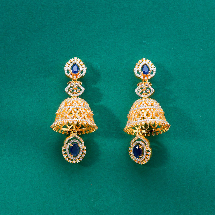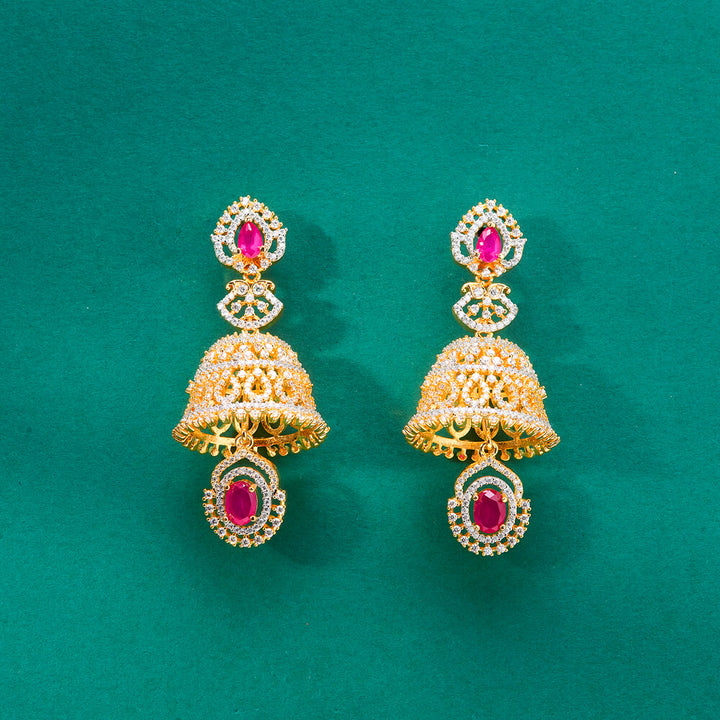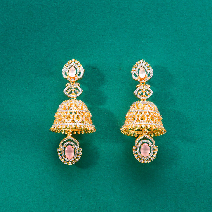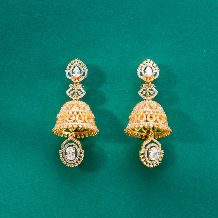 436529 Cz Classic Jhumki With 2 Tone Plating