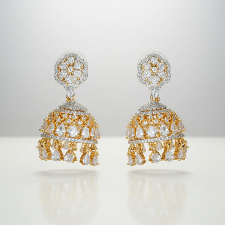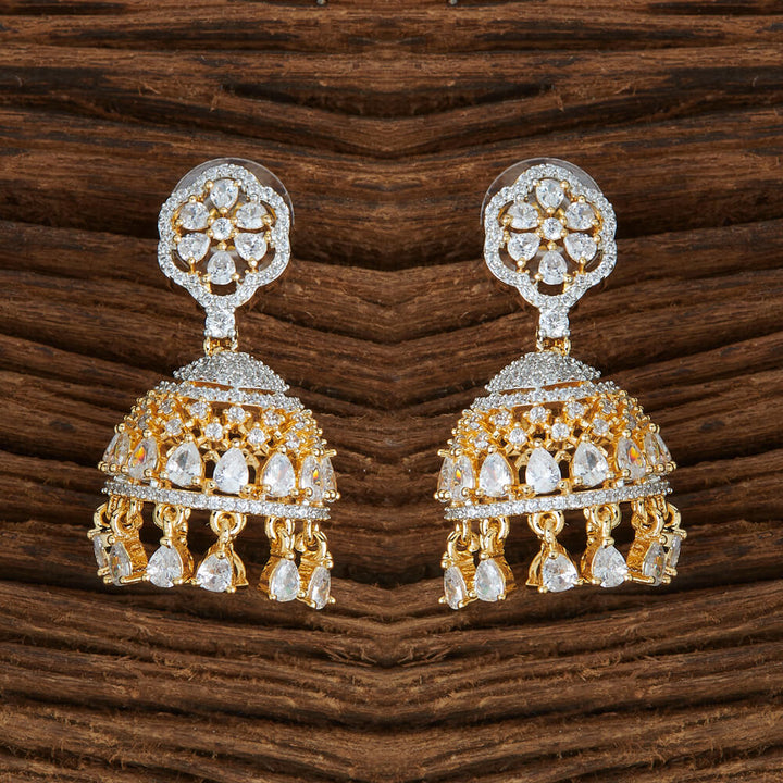 431423 Cz Classic Jhumki With 2 Tone Rhodium Plating