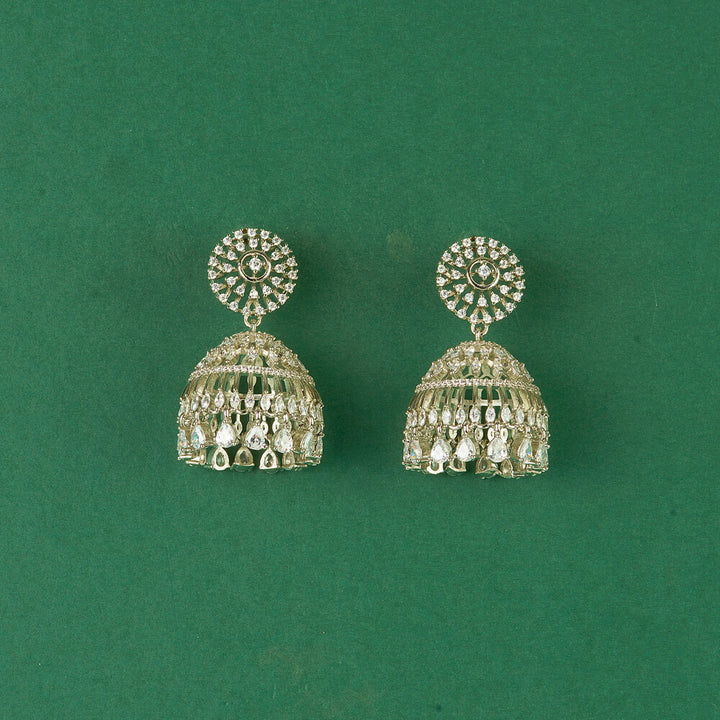 437656 Cz Classic Jhumki With 2 Tone Rhodium Plating