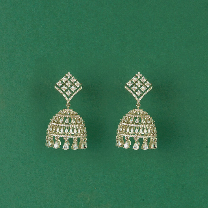 437657 Cz Classic Jhumki With 2 Tone Rhodium Plating
