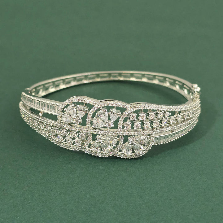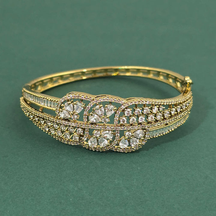 Weight: 16.0 Grams, Height = 50 mm || Width = 58 mm,Openable Kada,Mehndi Plating,2 Tone Plating,Rhodium Plating,American Diamond Kada