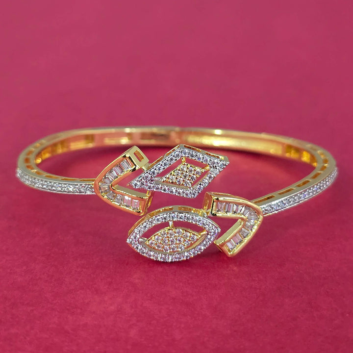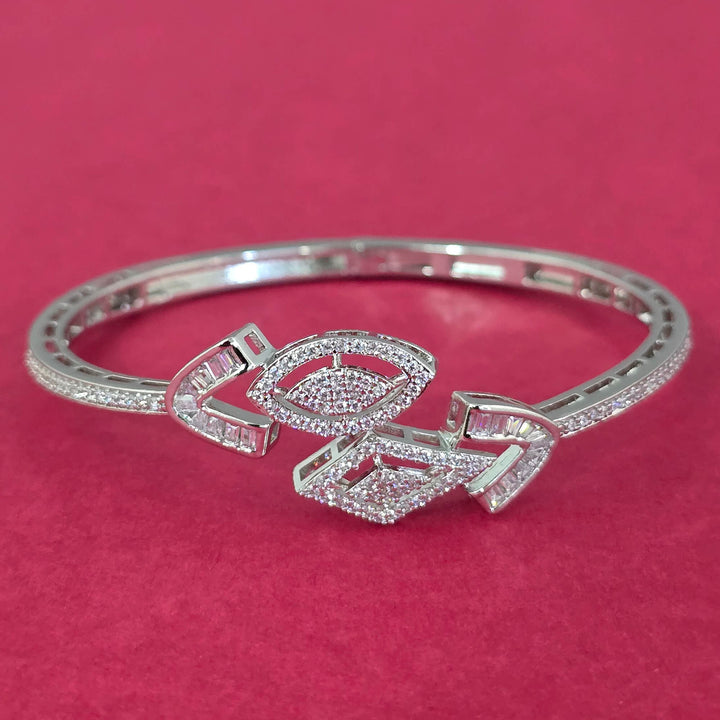 Weight: 12.0 Grams, Height = 47 mm || Width = 54 mm,Openable Kada,2 Tone Plating,Rhodium Plating,American Diamond Kada