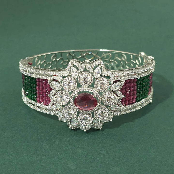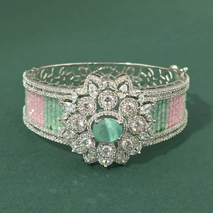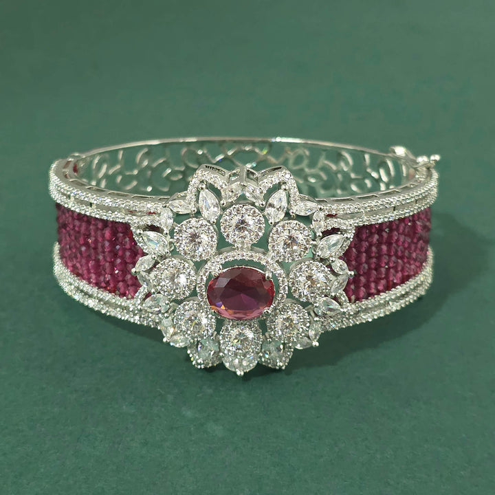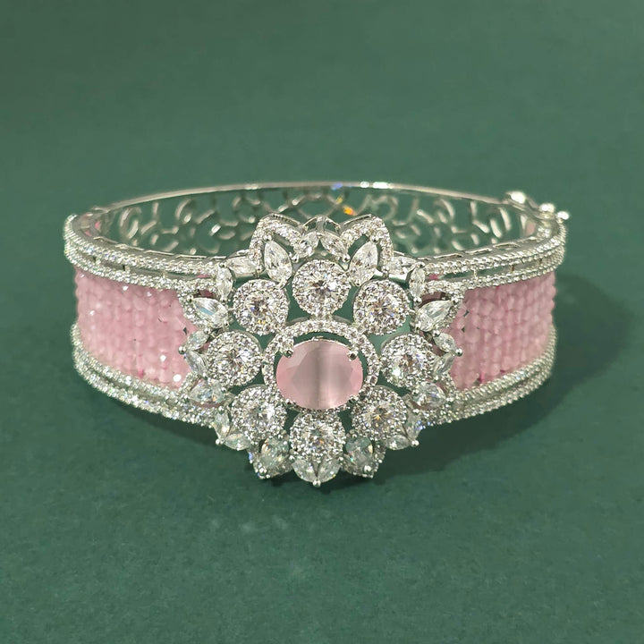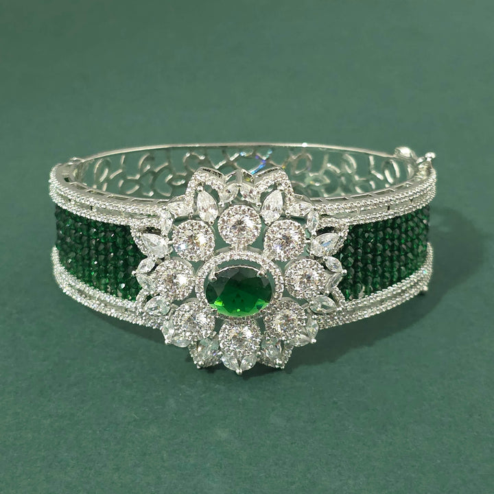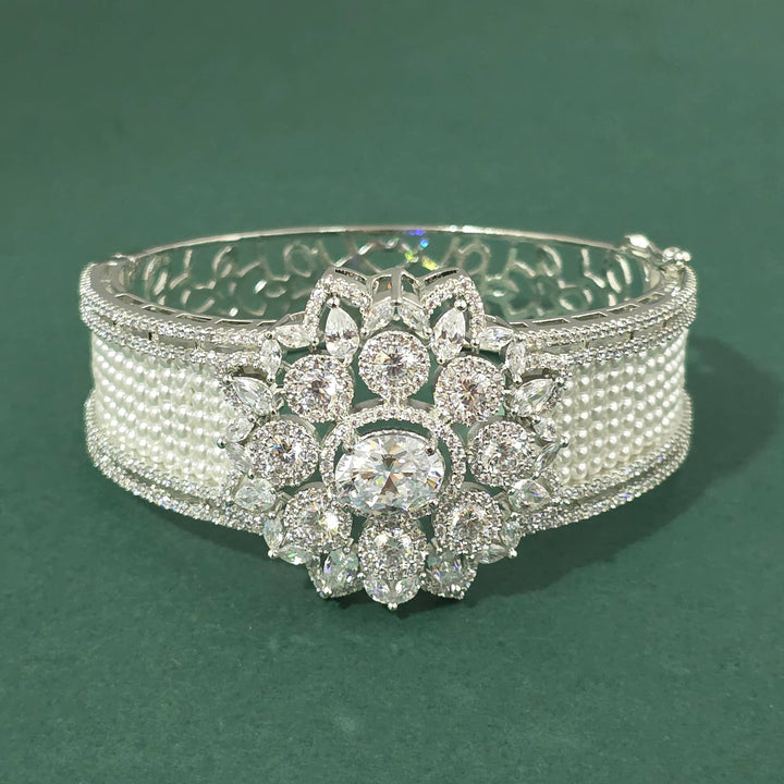 Weight: 36.0 Grams, Height = 48 mm || Width = 56 mm,Broad Kada,Openable Kada,Rhodium Plating,American Diamond Kada